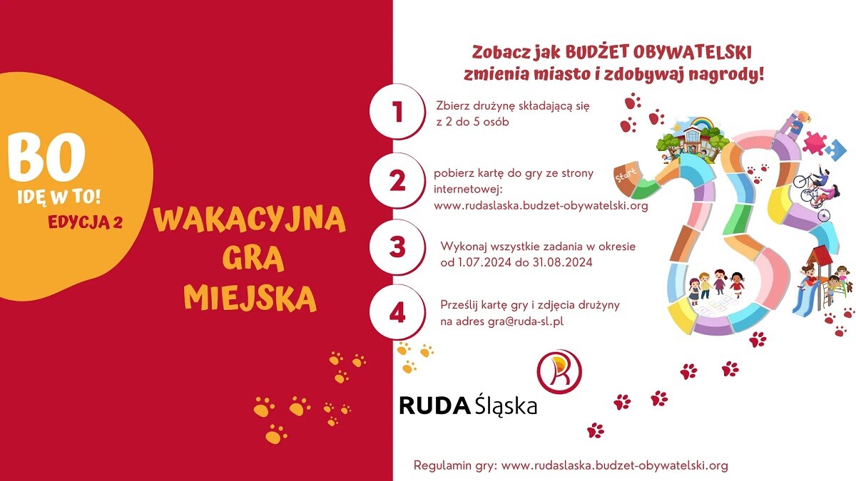 Trwa druga edycja drużynowej, wakacyjnej gry miejskiej „BO idę w to!”. Inicjatywa ma na celu promocję budżetu obywatelskiego, a przede wszystkim inwestycji, które dzięki niemu powstały w Rudzie Śląskiej. Grę należy ukończyć do 31 sierpnia, a dołączyć można w każdej chwili.