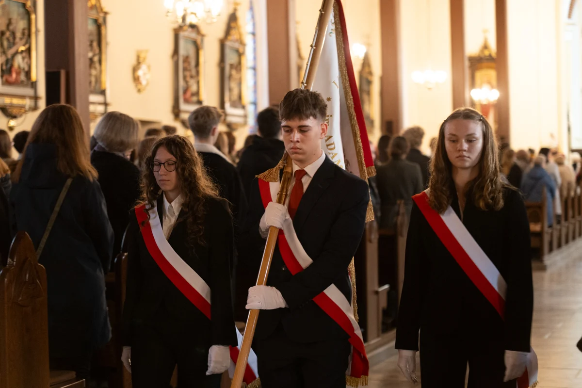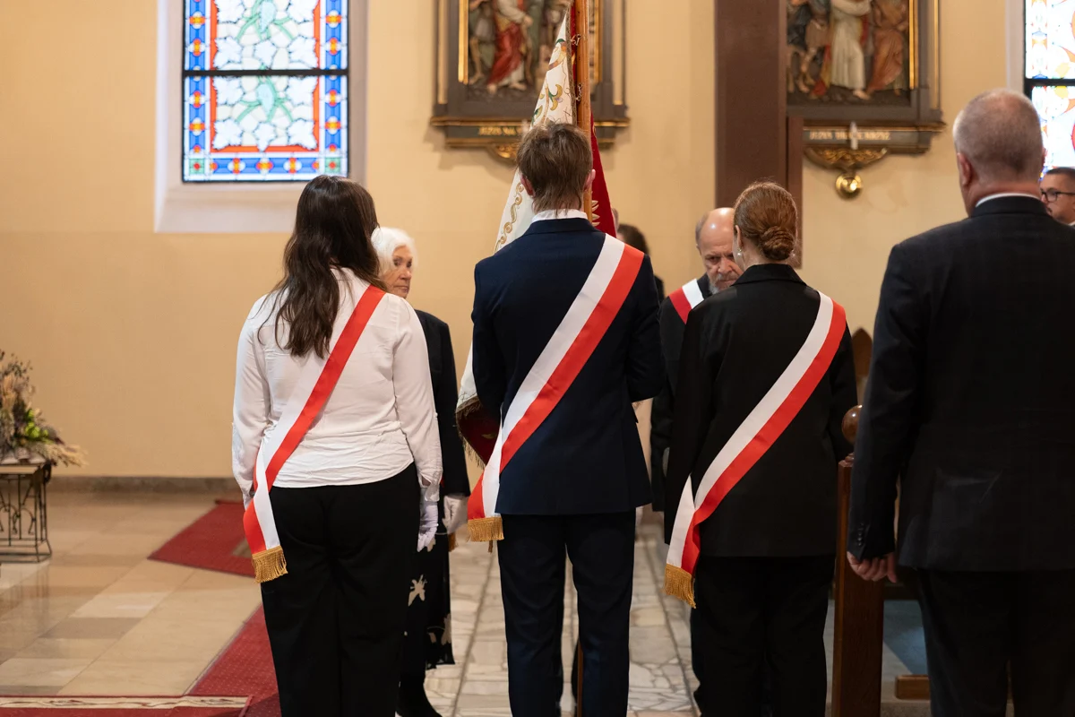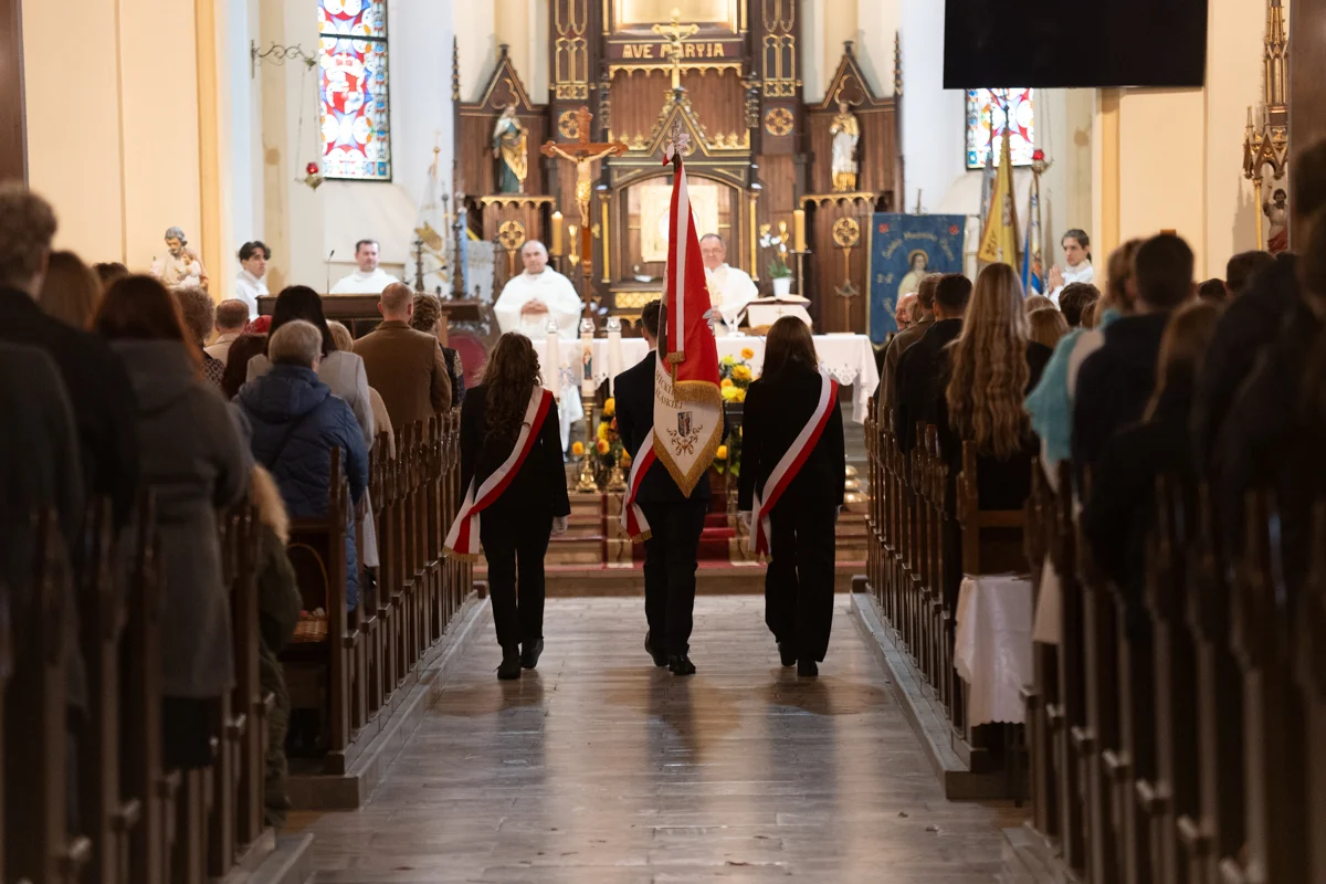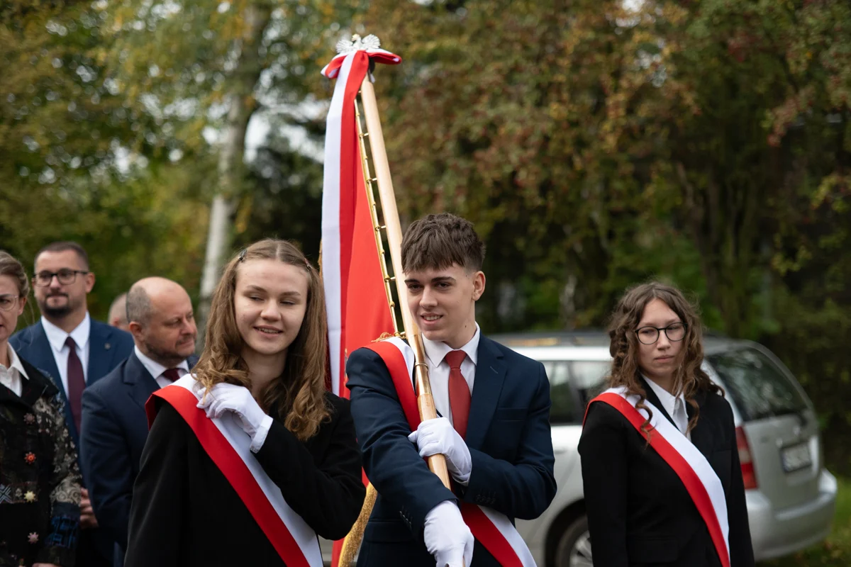 Jednym z najbardziej wzruszających momentów jubileuszu było odprowadzenie dotychczasowego sztandaru szkoły, który przez lata symbolizował historię, tradycję i wartości przekazywane z pokolenia na pokolenie. Jego miejsce zajął nowy sztandar, który został poświęcony w kościele pw. Matki Bożej Różańcowej. Ceremonia przekazania sztandaru miała charakter szczególny, pełen emocji i dumy.