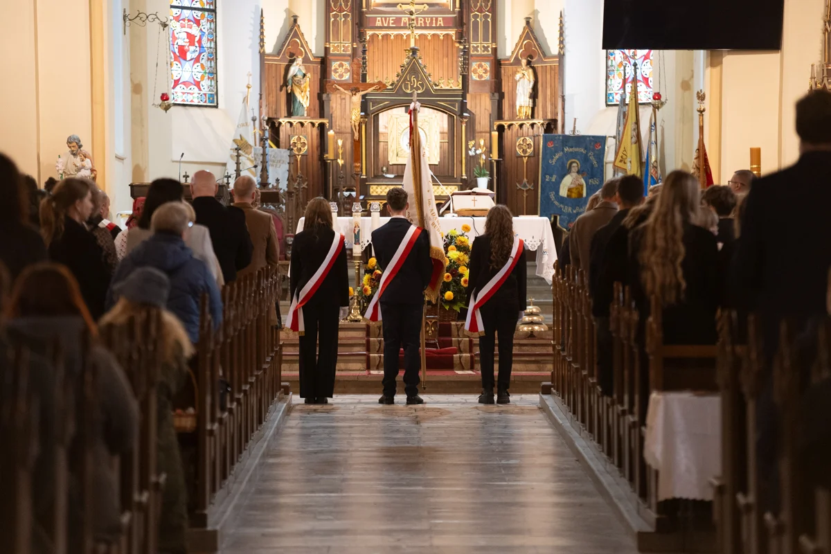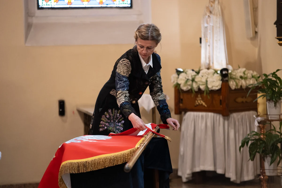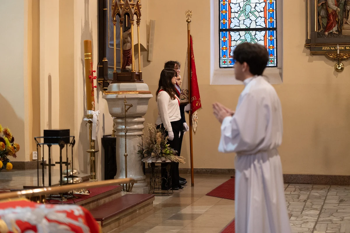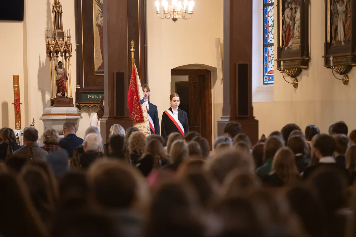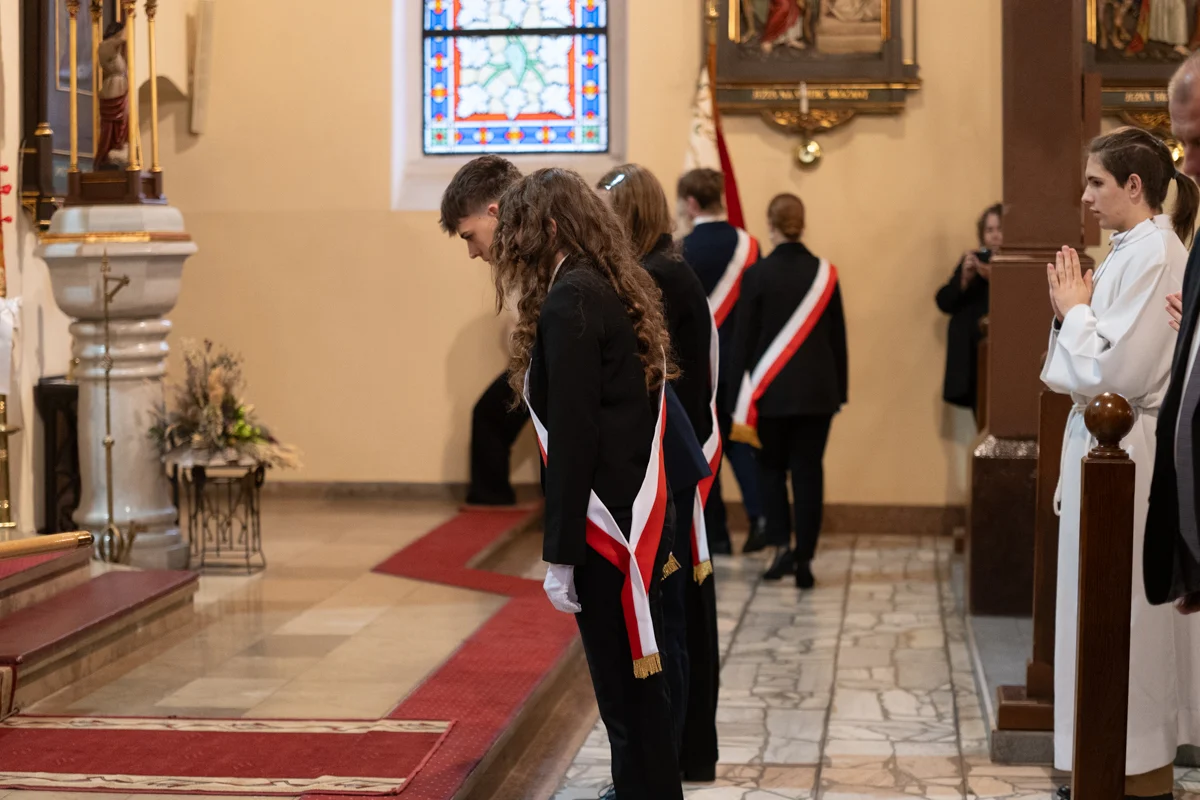 Jednym z najbardziej wzruszających momentów jubileuszu było odprowadzenie dotychczasowego sztandaru szkoły, który przez lata symbolizował historię, tradycję i wartości przekazywane z pokolenia na pokolenie. Jego miejsce zajął nowy sztandar, który został poświęcony w kościele pw. Matki Bożej Różańcowej. Ceremonia przekazania sztandaru miała charakter szczególny, pełen emocji i dumy.