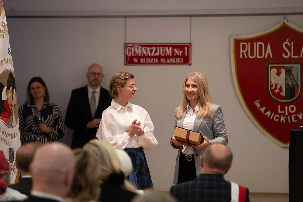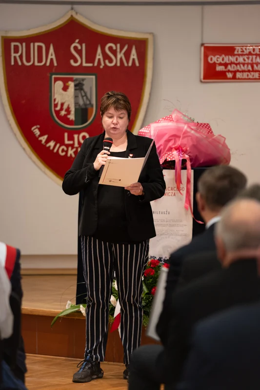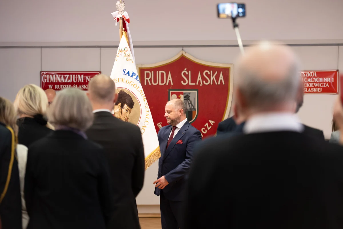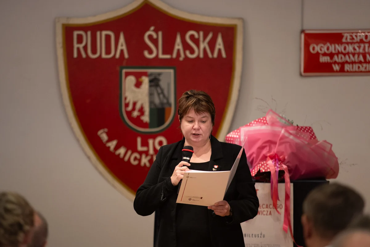 – Z ogromną radością uczestniczyłam dziś w uroczystościach zorganizowanych przez Was oraz w przekazaniu nowego sztandaru – symbolu jedności szkolnej i szacunku dla bogatej historii placówki. Niech ten wyjątkowy jubileusz będzie źródłem inspiracji, zachęcając do odkrywania nowych pasji, rozwijania talentów oraz aktywnego uczestnictwa w kształtowaniu tradycji szkoły, a nowy sztandar towarzyszy kolejnym pokoleniom, przypominając o wartościach, które budują ducha 'Mickiewicza – mówiła wiceprezydent Ruda Śląskiej, Anna Krzysteczko, podczas uroczystości.