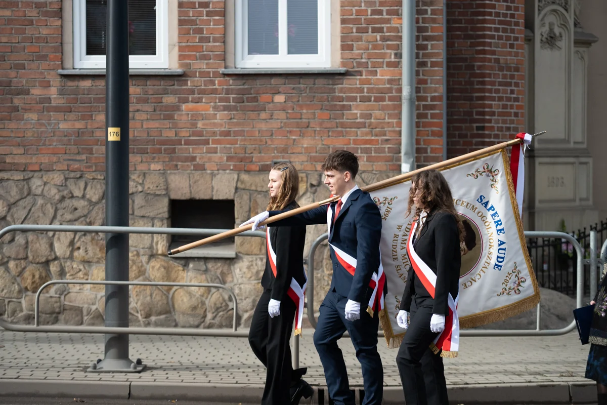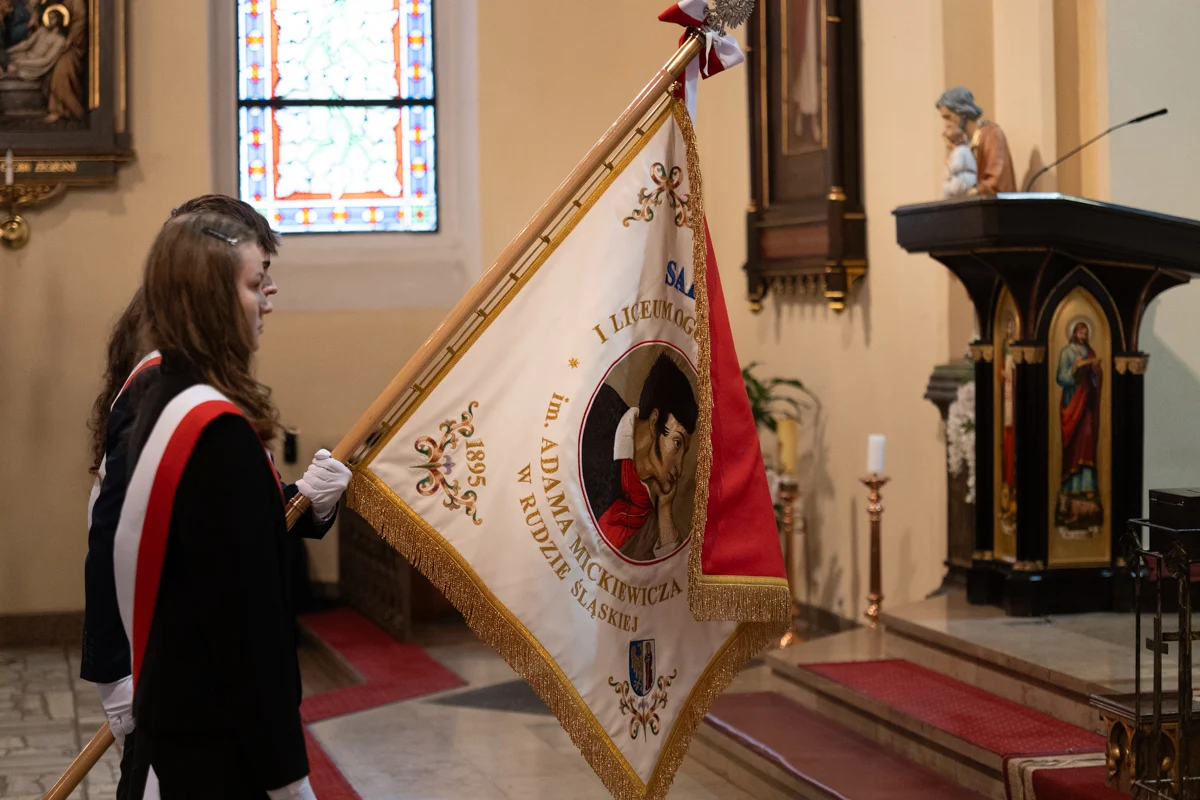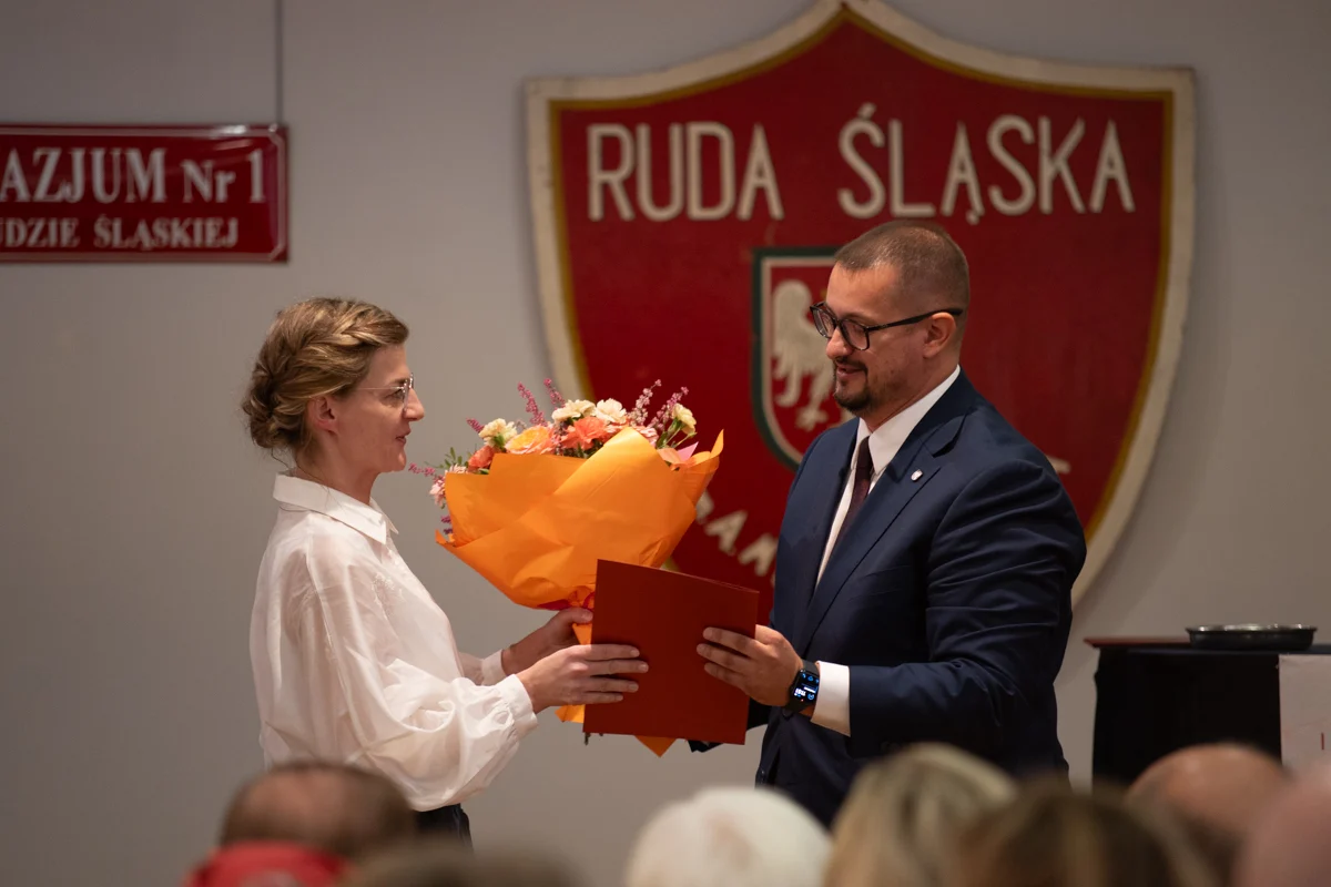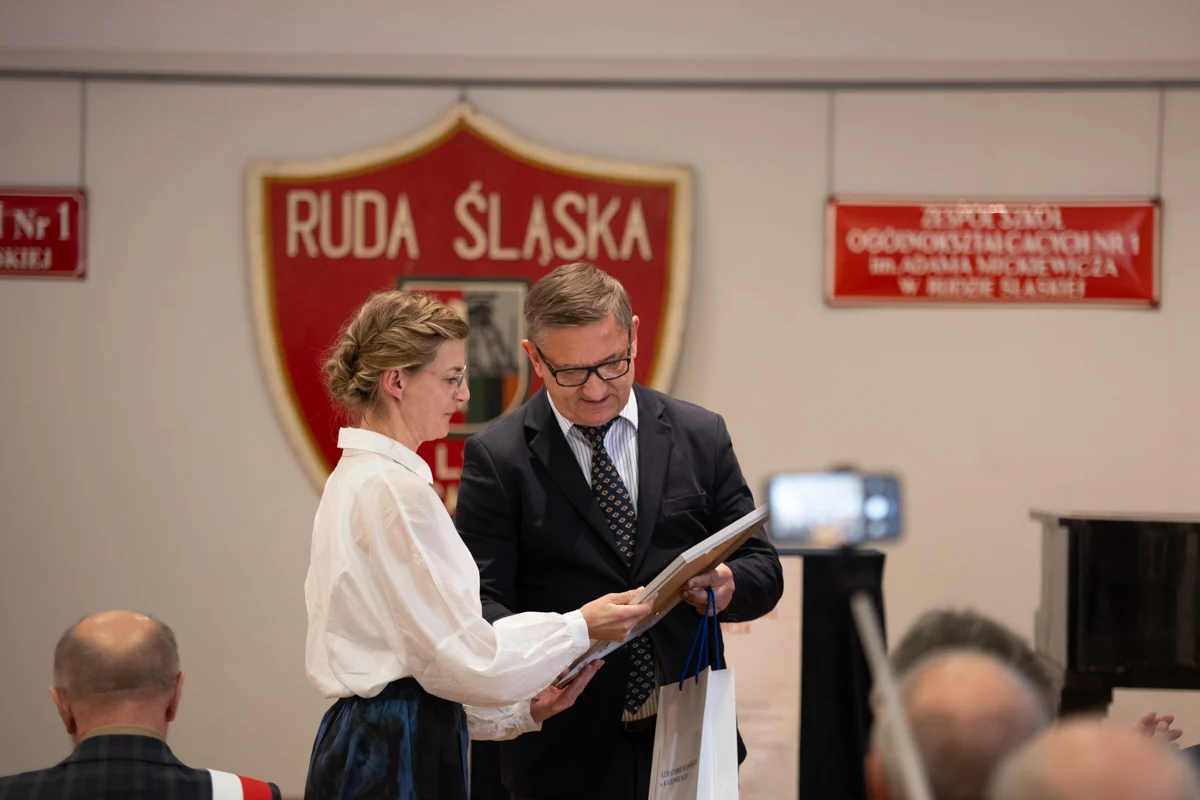 – Z ogromną radością uczestniczyłam dziś w uroczystościach zorganizowanych przez Was oraz w przekazaniu nowego sztandaru – symbolu jedności szkolnej i szacunku dla bogatej historii placówki. Niech ten wyjątkowy jubileusz będzie źródłem inspiracji, zachęcając do odkrywania nowych pasji, rozwijania talentów oraz aktywnego uczestnictwa w kształtowaniu tradycji szkoły, a nowy sztandar towarzyszy kolejnym pokoleniom, przypominając o wartościach, które budują ducha 'Mickiewicza – mówiła wiceprezydent Ruda Śląskiej, Anna Krzysteczko, podczas uroczystości.