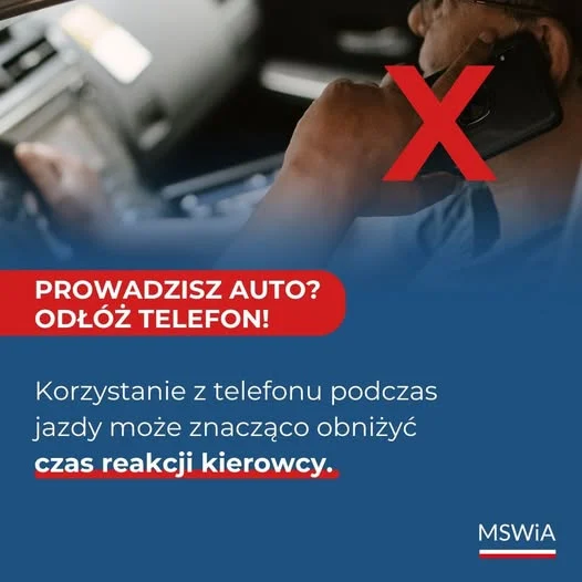 Funkcjonariusze przypominają – jeśli musisz odebrać telefon, zatrzymaj się w bezpiecznym miejscu. Korzystanie z urządzeń mobilnych podczas jazdy może kosztować nie tylko mandat, ale przede wszystkim czyjeś zdrowie lub życie.