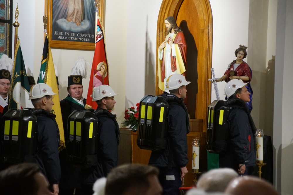 Górnicza brać z kopalni Ruda Ruch Bielszowice najpierw uczestniczyła w modlitwie w cechowni, aby później w uroczystym orszaku wraz z pocztami sztandarowymi przejść do kościoła pw. św. Marii Magdaleny na mszę w intencji byłych i obecnych pracowników kopalń.