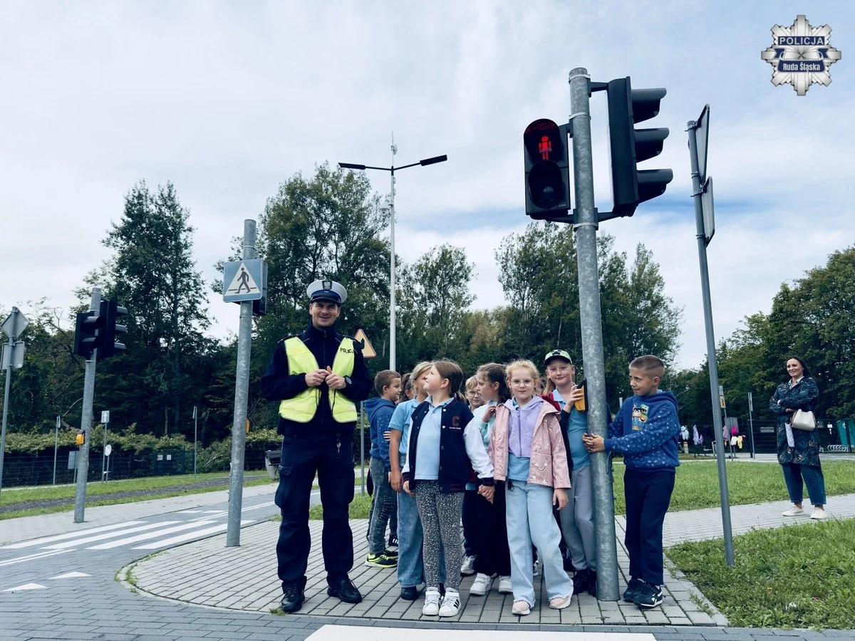 Policjanci z Rudy Śląskiej przeprowadzili zajęcia dla dzieci z zasad ruchu drogowego. Uczniowie ćwiczyli przechodzenie przez pasy, reagowanie w sytuacjach zagrożenia i zasady bezpieczeństwa.