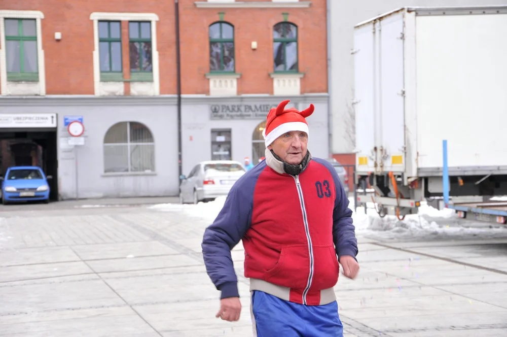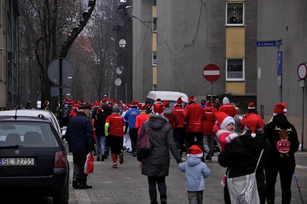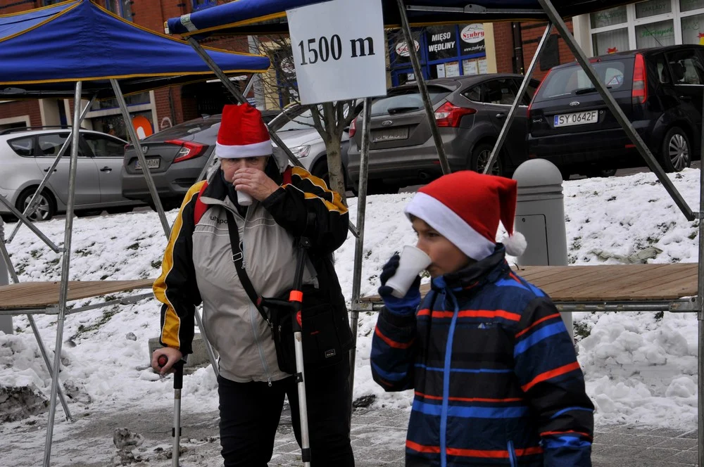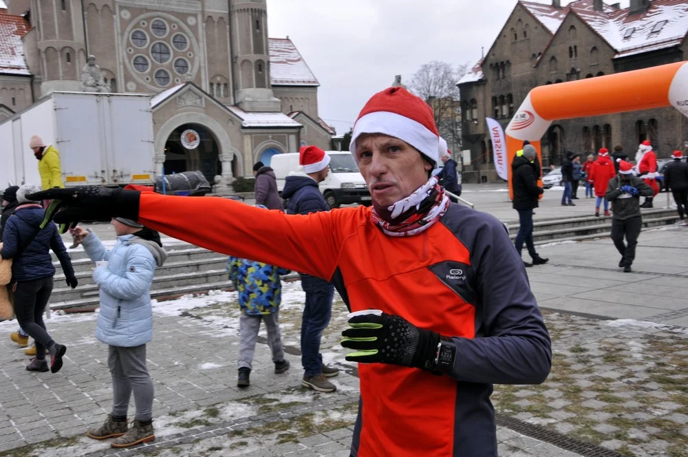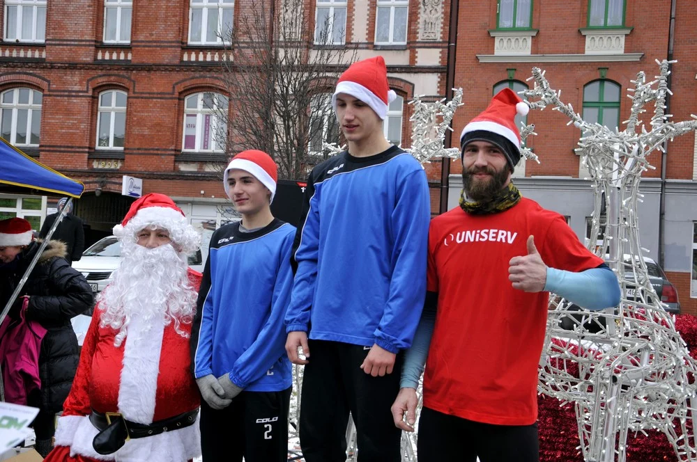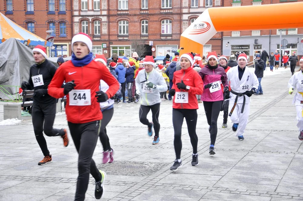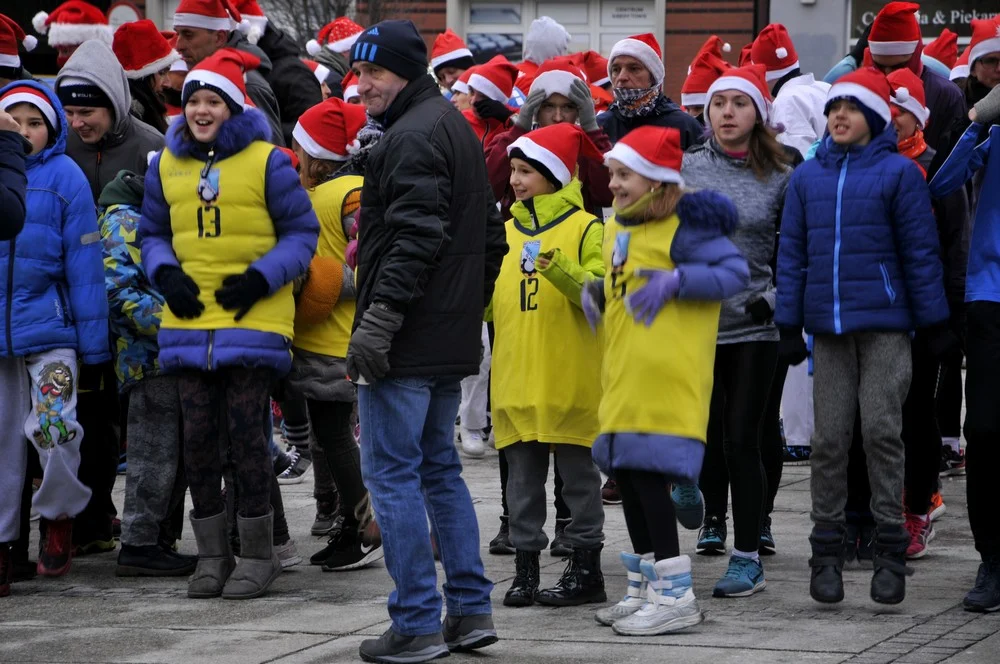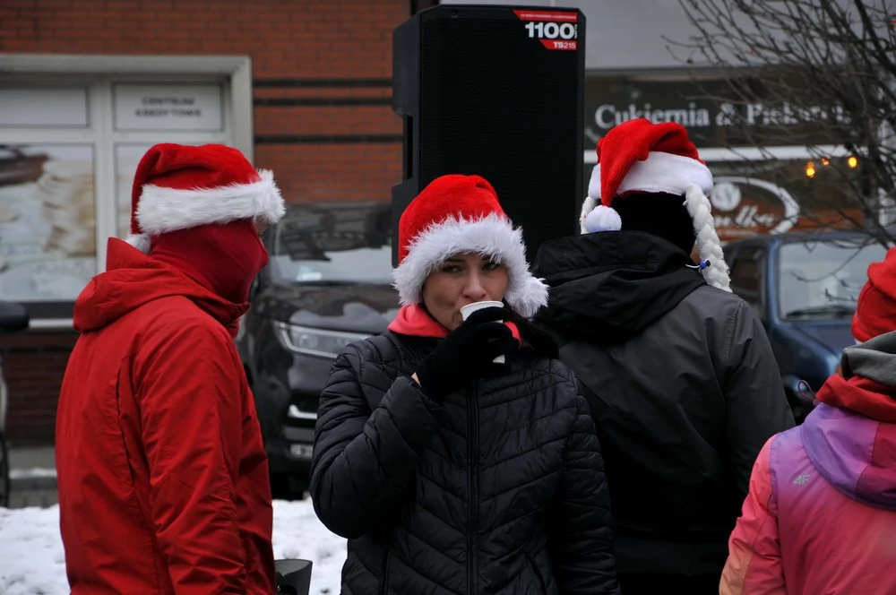 Mikołaje zjawili się dzisiaj tłumnie na rynku, aby wziąć udział w biegu charytatywnym – w tym roku celem tej sportowo-mikołajkowej akcji jest ratowanie chorego na glejaka Kacperka z Rudy Śląskiej.