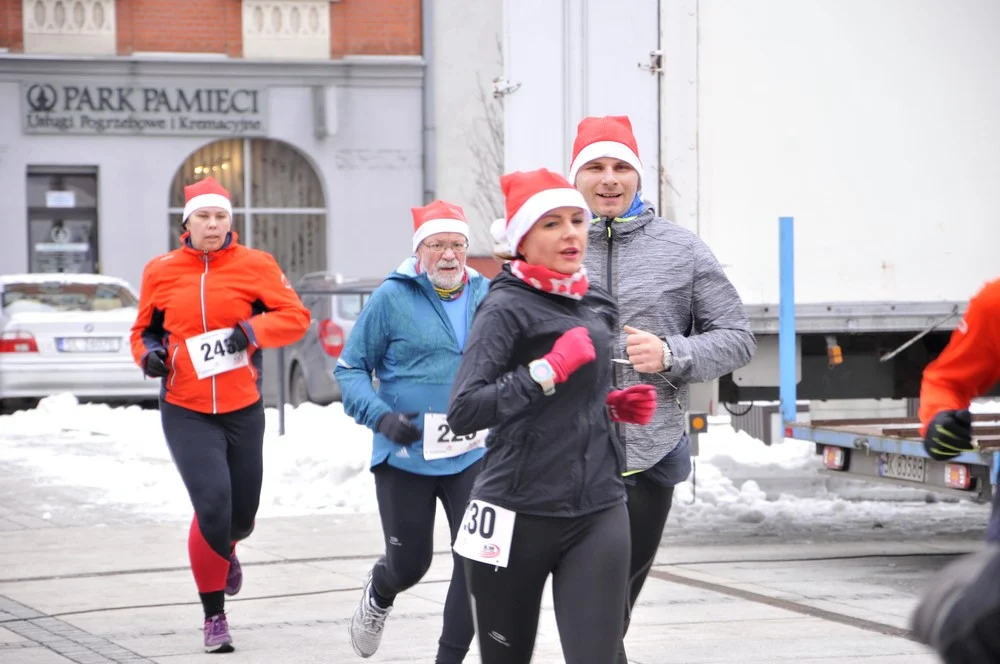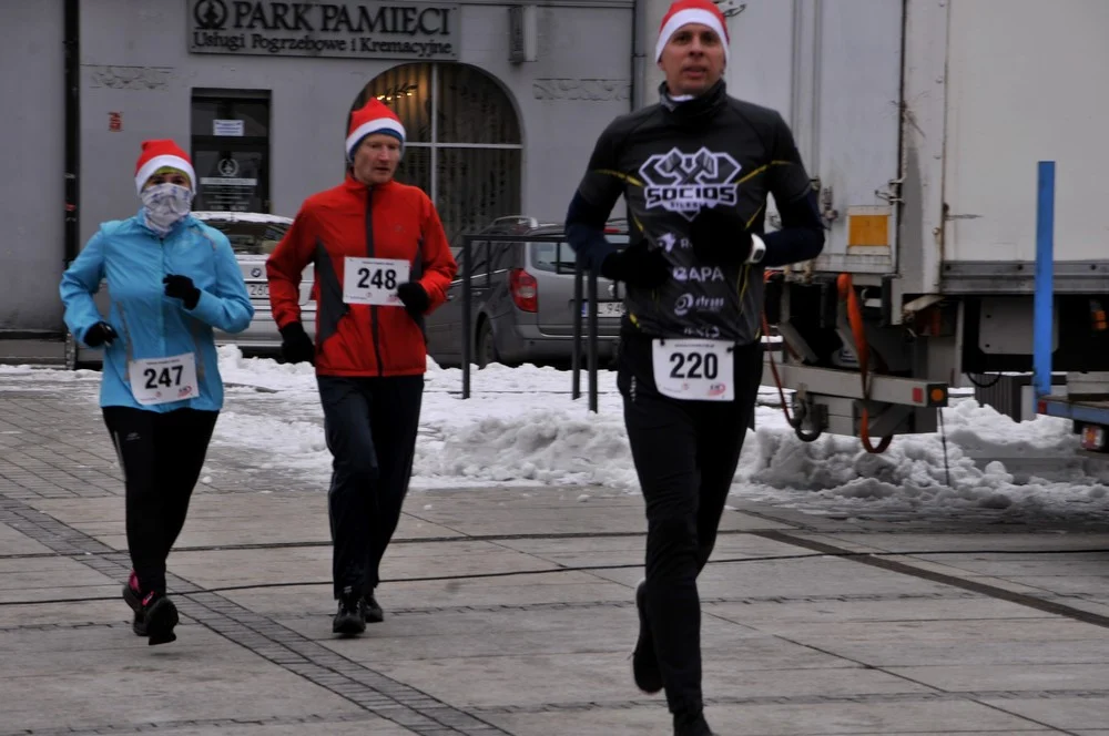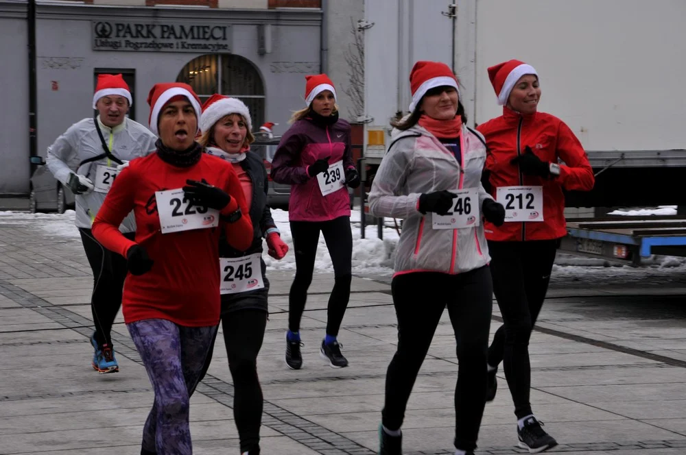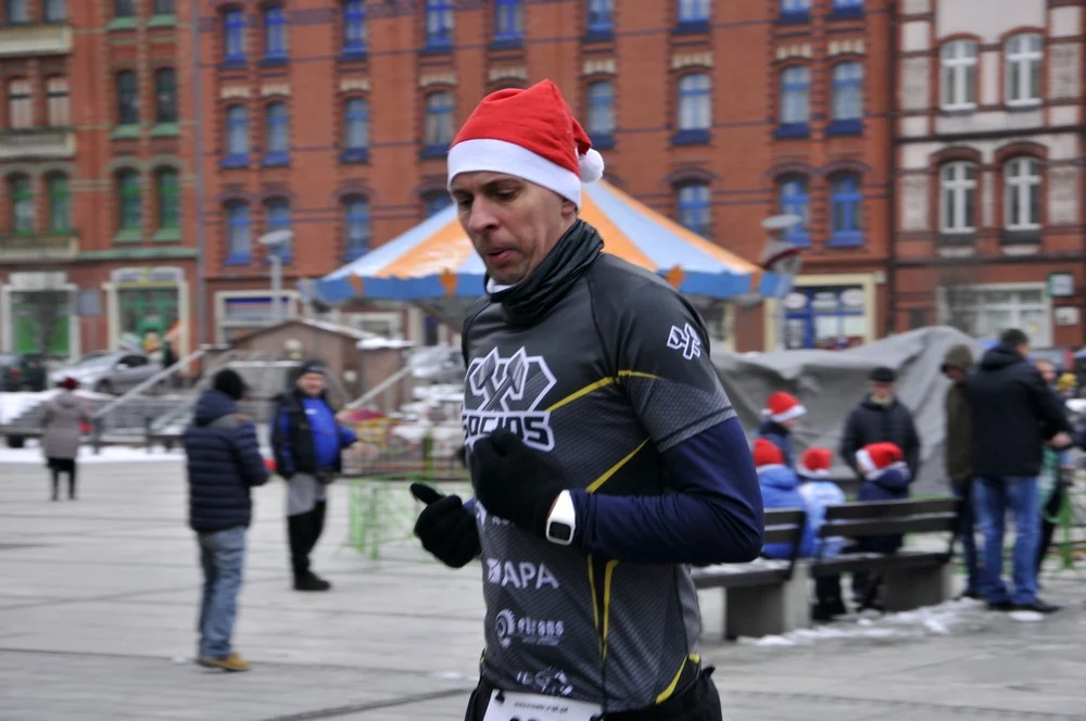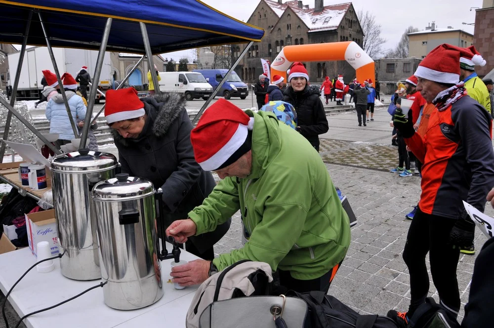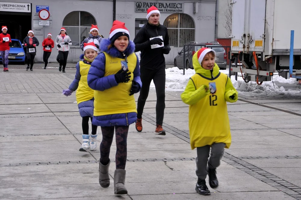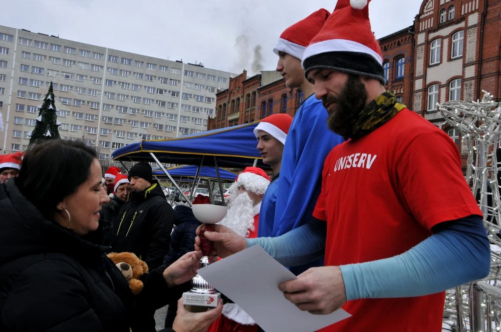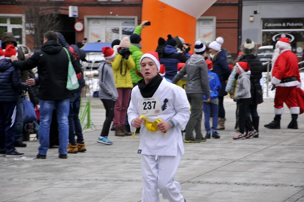 Mikołaje zjawili się dzisiaj tłumnie na rynku, aby wziąć udział w biegu charytatywnym – w tym roku celem tej sportowo-mikołajkowej akcji jest ratowanie chorego na glejaka Kacperka z Rudy Śląskiej.