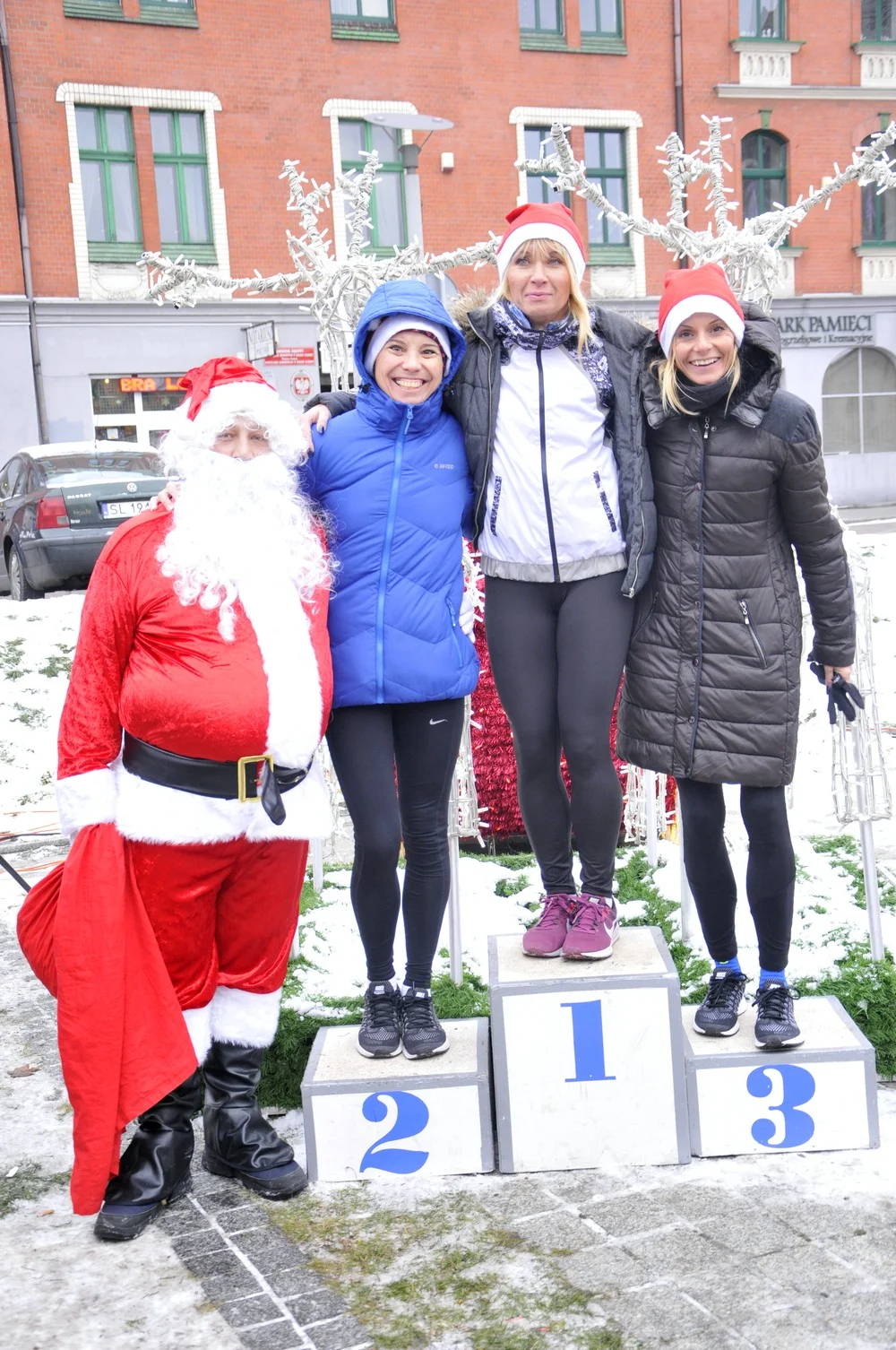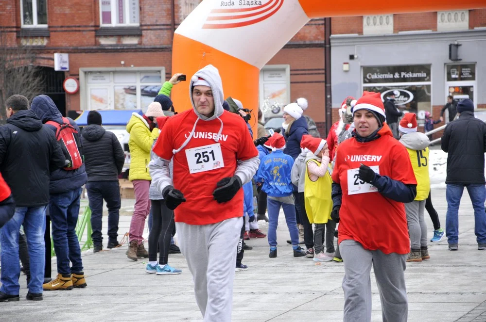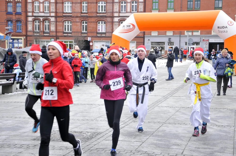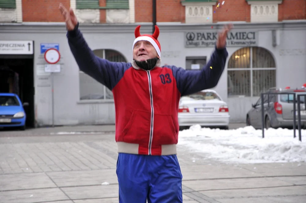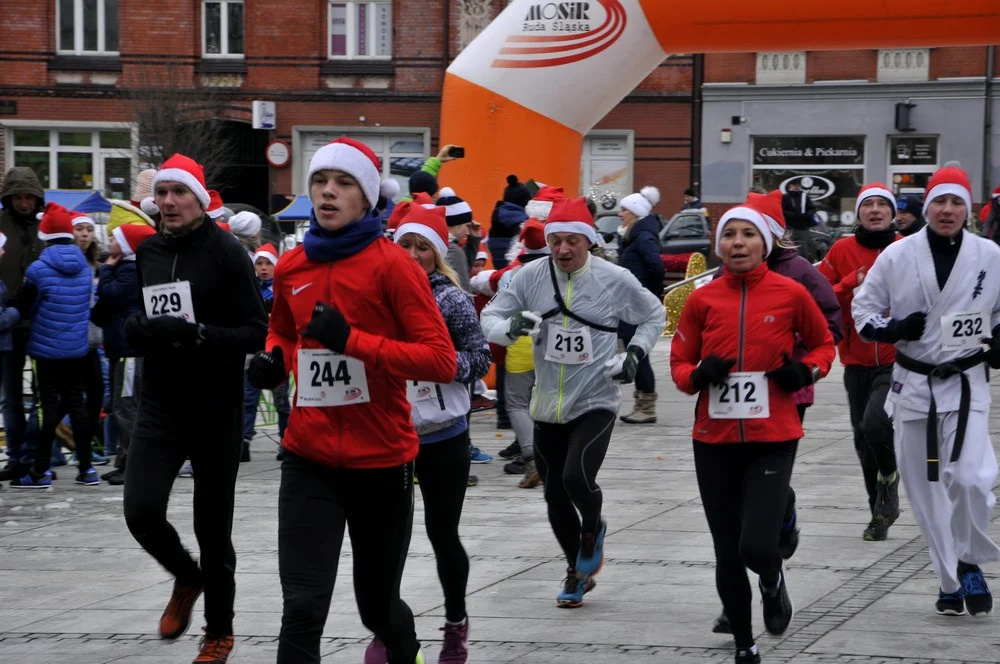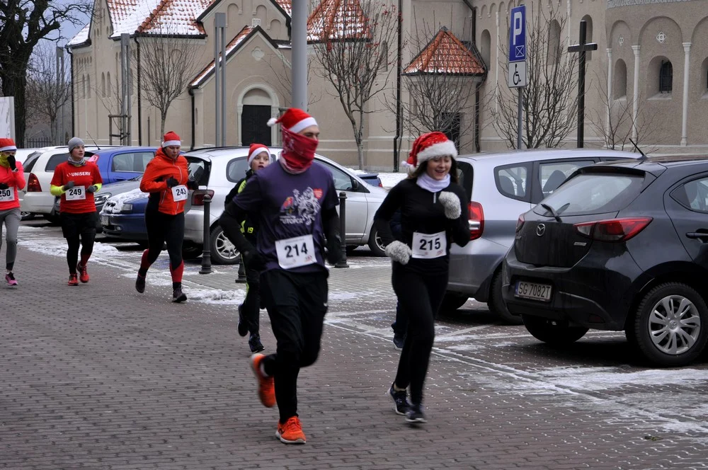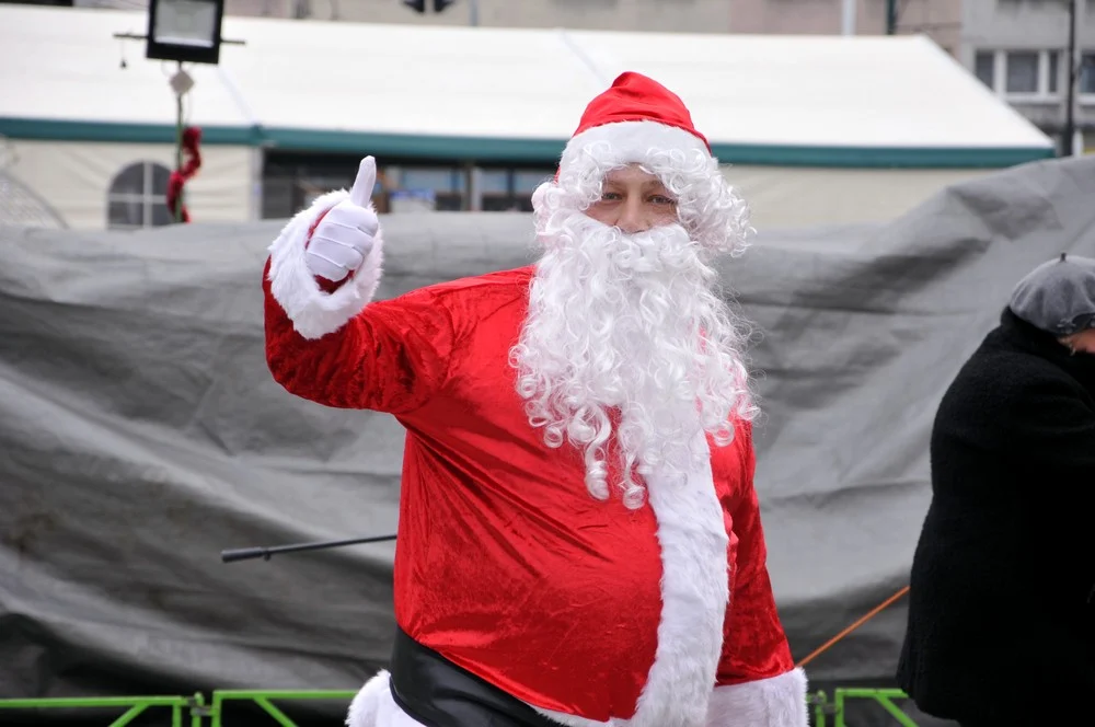 Mikołaje zjawili się dzisiaj tłumnie na rynku, aby wziąć udział w biegu charytatywnym – w tym roku celem tej sportowo-mikołajkowej akcji jest ratowanie chorego na glejaka Kacperka z Rudy Śląskiej.