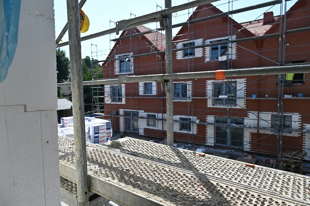 Prace na budowie mieszkań komunalnych przy ul. Bankowej w Rudzie przebiegają zgodnie z planem.