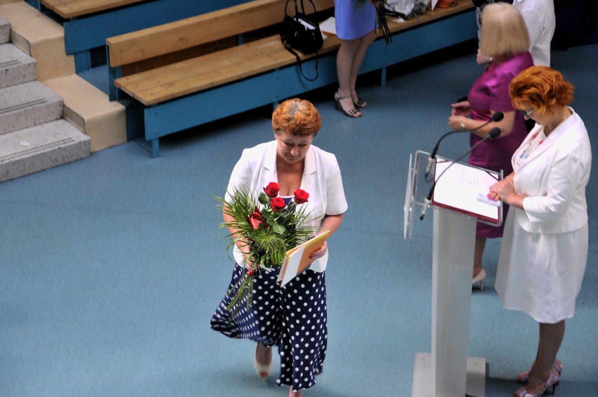 Dziękuję za bardzo dobrą sprawność przez cały rok – wiecie dobrze, że sercem jestem po stronie nauczycieli, co udowodniłam w czasie trudnego okresu jaki jest za nami. (…) Moja zastępczyni Anna Krzysteczko i pani prezes ZNP porozumiały się. W drodze tutaj pani prezydent powiedziała mi, że nikt nie jest zadowolony, bo zawarto kompromis – ja to widzę inaczej. Widzę to, że panie są bardzo odpowiedzialne, że zrozumiały sytuację miasta i sytuację nauczycieli. – mówiła do zgromadzonych dyrektorów prezydent Rudy Śląskiej Grażyna Dziedzic – Chcę powiedzieć, że od 1 lipca w Rudzie Śląskiej będą podwyżki o 6% – dodała prezydent.