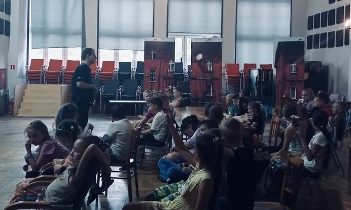 W czasie spotkania z kolonistami dzielnicowy st.sierż. Krzysztof Struzik przekazał najmłodszym uczestnikom cenne informacje na temat zasad bezpiecznego zachowania nad wodą. Dzieci dowiedziały się, jak unikać niebezpieczeństw podczas zabaw w wodzie, jak prawidłowo korzystać z kąpielisk strzeżonych oraz jakie są zasady udzielania pierwszej pomocy.