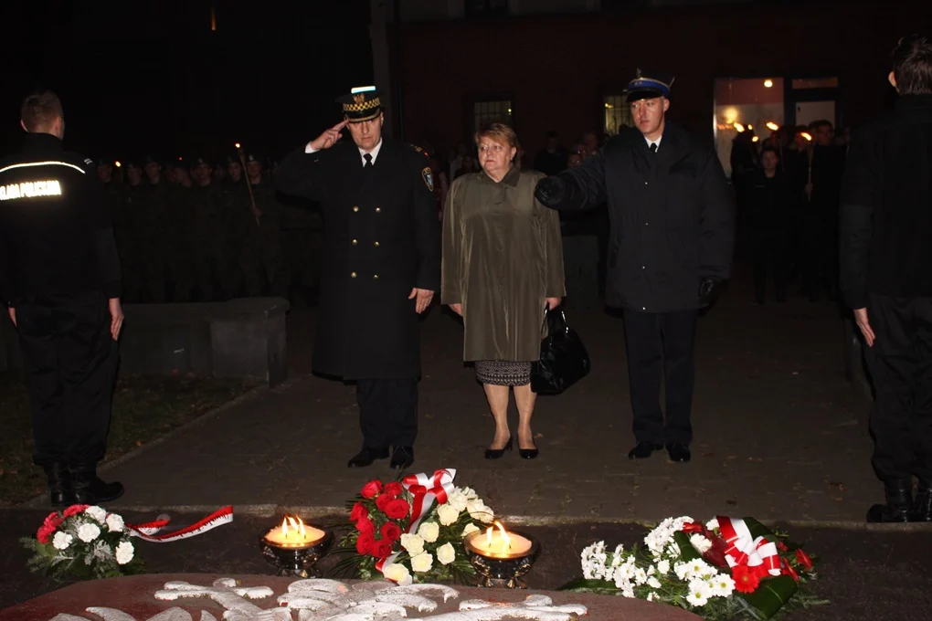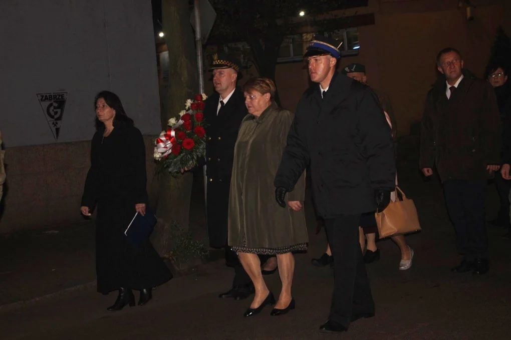 Po zakończonym ślubowaniu uczniowie wraz z rodzicami oraz mieszkańcami pobliskich ulic, którzy tłumnie przybyli na uroczystość, przeszli w asyście orkiesty dętej pod Pomnik Obrońców Ojczyzny przy ul. kard. Hlonda. Pod pomnikiem dyrekcja szkoły, przedstawiciele władz miasta oraz służb mundurowych złożyli kwiaty.