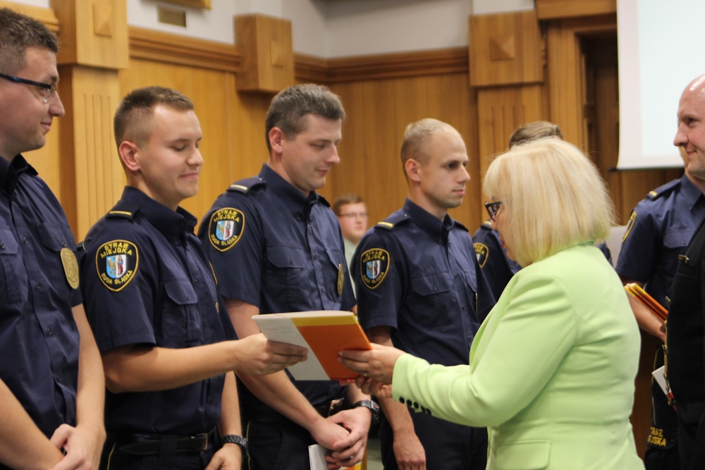 Dzisiaj (13 września) Straż Miejska Rudy Śląskiej obchodzi swoje święto. Z tej okazji wielu strażników pojawiło się w Sali sesyjnej Urzędu Miasta, gdzie nastąpiło między innymi uroczyste mianowanie na wyższe stopnie, a osoby wyróżniające się w swojej służbie otrzymały nagrody i wyróżnienia.