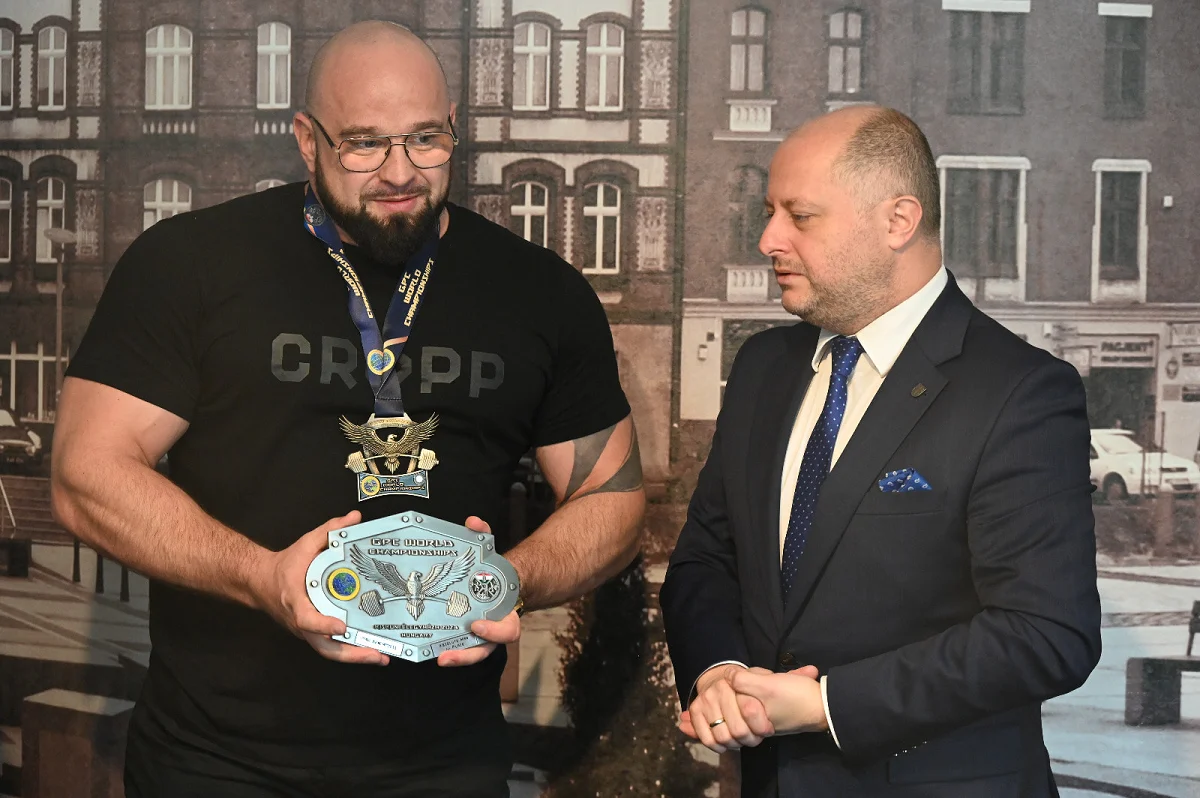 – Dziś miałem okazję pogratulować podwójnemu mistrzowi świata – Adamowi Łaskawskiemu, który zdobył złoto w wyciskaniu sztangi leżąc podczas Mistrzostw Świata Federacji GPC na Węgrzech. Rudzianin jeden złoty medal otrzymał za pierwsze miejsce w kategorii wagowej do 140 kg, a drugi w kategorii open jako najlepszy zawodnik senior. Podniósł 255 kilogramów – przekazał prezydent Rudy Śląskiej, Michał Pierończyk. – Bardzo się cieszę, że mamy w naszym mieście tak uzdolnionych sportowców, którzy promują Rudę Śląską na świecie. Przypomnę, że ten utalentowany zawodnik, który zajmuje się wyciskaniem sztangi na leżąco od 7 lat, ma już na swoim koncie wiele tytułów i medali. Życzę Panu Adamowi wielu kolejnych sukcesów i trzymam kciuki za udany start na zbliżających się mistrzostwach Europy – dodał.