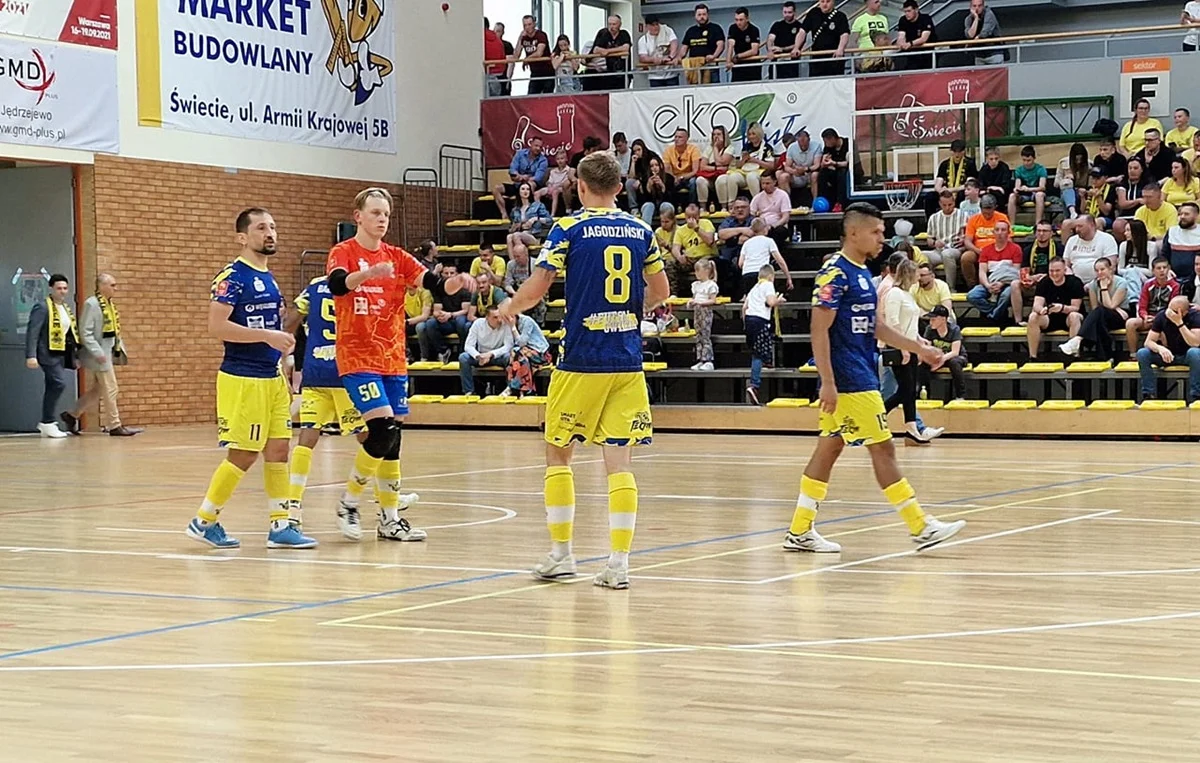 W pierwszym meczu barażowym o awans do ekstraklasy Futsal Świecie pokonał PKO Gwiazdę Ruda Śląska 3:5. W niedzielę 12 maja w Świeciu odbył się mecz rewanżowy pomiędzy drużynami. Gospodarze otworzyli wynik meczu, lecz rudzianie szybko odpowiedzieli, doprowadzając do remisu. Do przerwy wynik pozostał nierozstrzygnięty, 2:2. Po zmianie stron PKO Gwiazda Ruda Śląska, szybko odrobiła straty z pierwszego meczu, uzyskując przewagę 5:2. Ostatecznie mecz zakończył się wynikiem 6:2 dla Gwiazdy. Tym sposobem to właśnie rudzianie awansowali do Fogo Futsal Ekstraklasy!