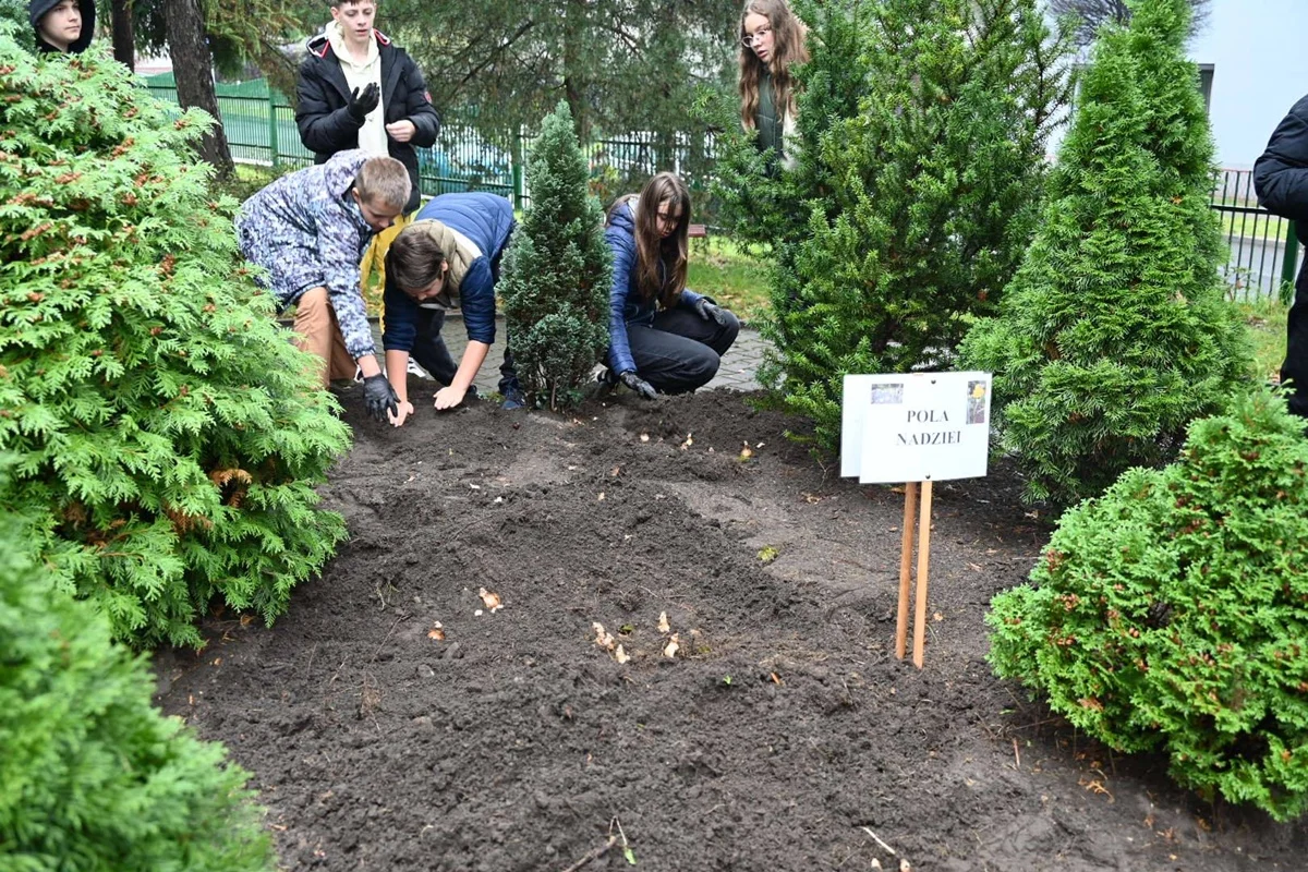 Podczas wydarzenia uczestnicy mieli również okazję porozmawiać o działalności Hospicjum Domowego im. św. Jana Pawła II, które od lat niesie pomoc chorym w Rudzie Śląskiej. Wspólnie z wolontariuszami, pracownikami szkoły i przedstawicielami hospicjum udało się zasadzić kolejne żonkile, które będą rosły jako symbol pamięci, wsparcia i wspólnoty.