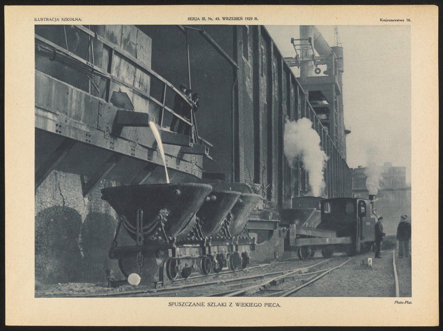 Na zdjęciach znajdujących się w naszej galerii można zobaczyć m.in. kopalnię węgla “Wanda-Lech” w Nowym Bytomiu z 1938 roku. Była to głębinowa kopalnia węgla kamiennego, a działa w latach 1938-1968 (zdjęcia udostępnił Koncern Ilustrowany Kurier Codzienny – Archiwum Ilustracji). Wiele fotografii pochodzących z archiwum Henryka Poddębskiego ukazuje z kolei dzisiejszą hutę “Pokój”. Najczęściej pojawiającym się na zdjęciach obiektem jest Wielki Piec (zdjęcia pochodzą z zasobów Polony). Zaprezentowano m.in. kolejkę napowietrzną w hucie “Pokój”, spuszczanie pieca martynowskiego, walcownię szyn oraz piece do wypalania rudy. Charakterystyczną fotografią jest także ta przedstawiająca uczestników uroczystości odbywającej się w hucie “Pokój”. Widoczni na zdjęciu są m.in.: dyrektor Stanisław Surzycki (2. z lewej) i wojewoda śląski Michał Grażyński (3. z lewej), a pamiątka pochodzi z Ilustrowanego Kuriera Codziennego.