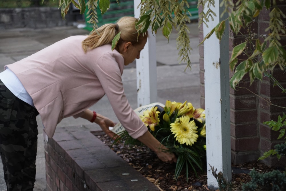 Przed startem o godzinie 10:15 organizatorzy biegu złożyli wieniec pod pomnikiem górników przy KWK ” Halemba”.