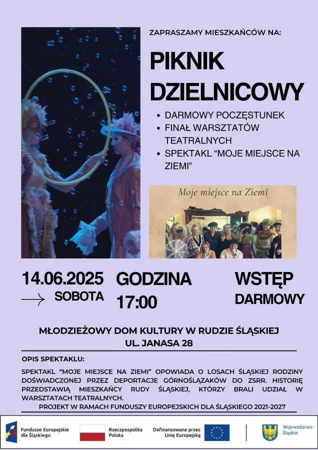 W najbliższą sobotę, 14 czerwca, w dzielnicy Ruda odbędzie się Piknik Dzielnicowy, którego głównym punktem będzie premiera spektaklu „Moje miejsce na Ziemi”.