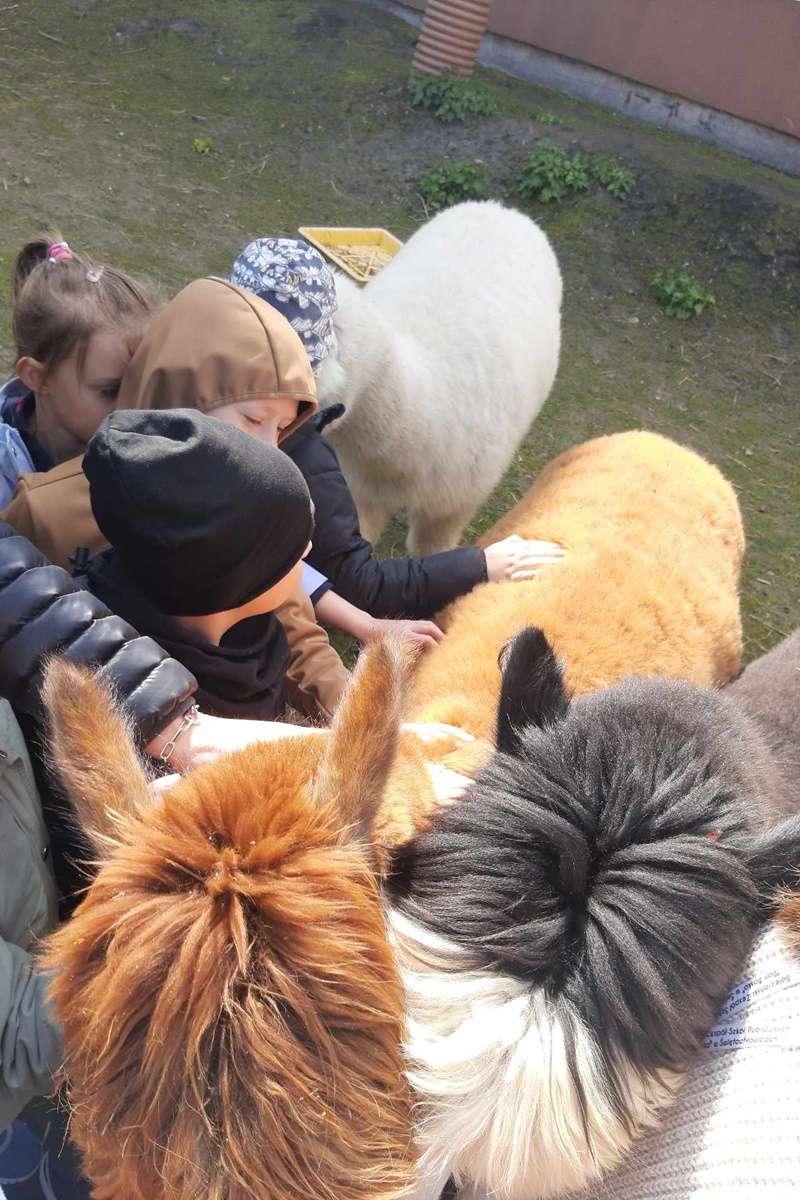 Starszaki mimo wielu obowiązków wybrały się również na wycieczkę do Seleziańskiej Szkoły Zawodowej w Świętochłowicach, gdzie miały możliwość przebywania z alpakami. Dzięki uprzejmości opiekunów zwierząt mogły zapoznać się z ich życiem, zwyczajami i sprawdzić czy faktycznie mają miękkie futra.