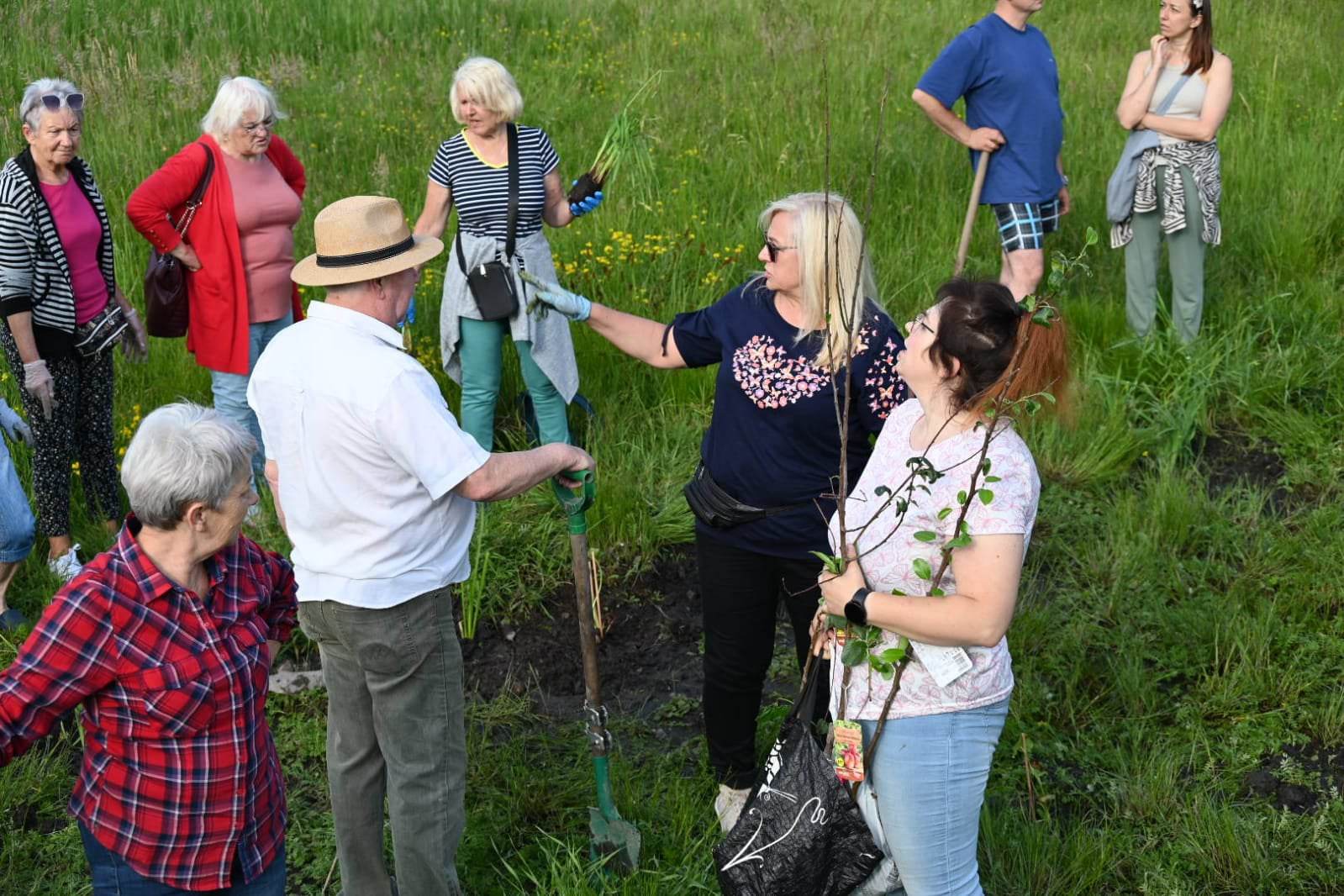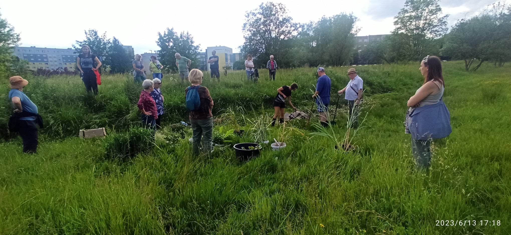 – Poznajcie tę wspaniałą grupę ludzi, którzy do późnych godzin sadzili rośliny wodne i drzewa. A łatwo nie było gdyż teren trudny, w gruncie dużo kamieni, i zarośnięty trawą. No i mokry, bo przecież sadziliśmy rośliny wodne. Wszystko własnymi rękami i własnymi narzędziami! – czytamy w poście radnej Ewy Chmielewskiej.