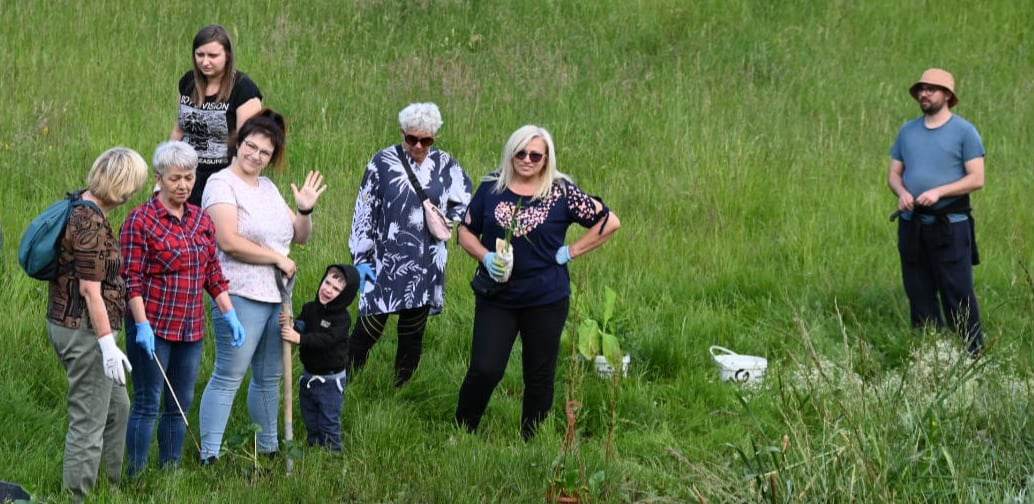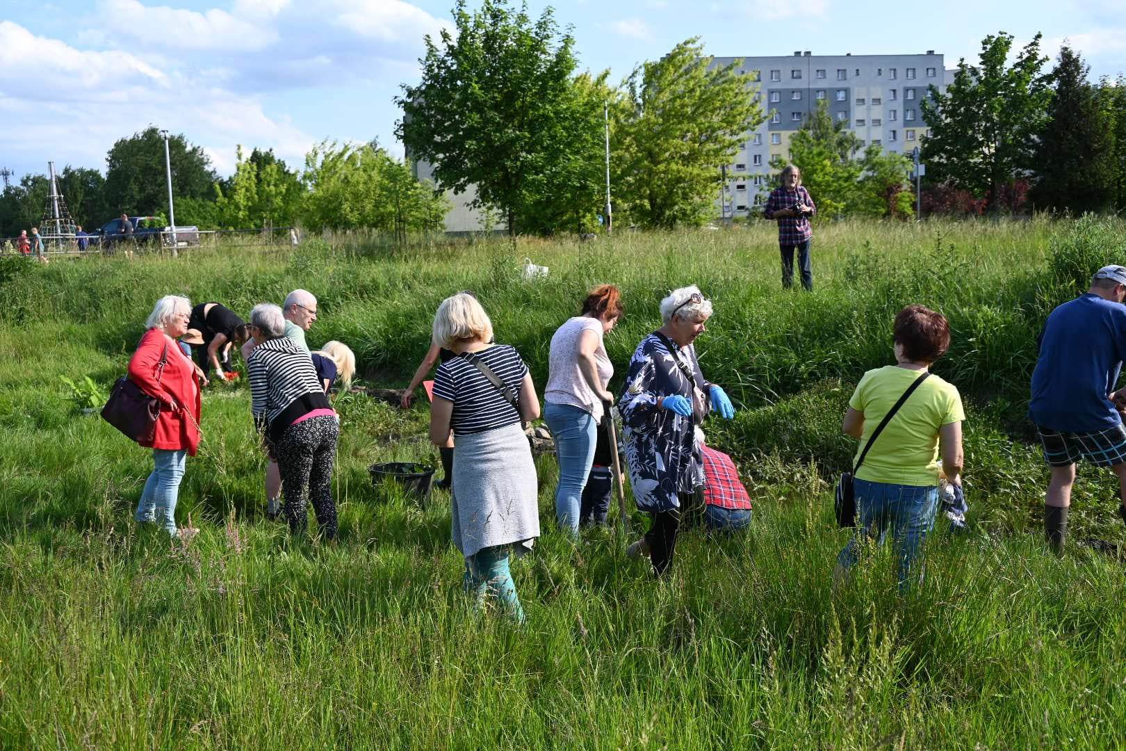 Radna Ewa Chmielewska zebrała grupę zaangażowanych mieszkańców naszego miasta, którzy we wtorek, 13 czerwca, wspólnie sadzili rośliny wodne oraz drzewa przy Strefie Aktywności w dzielnicy Bykowina.
