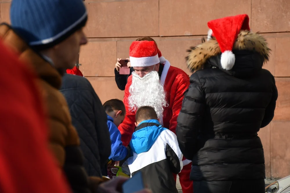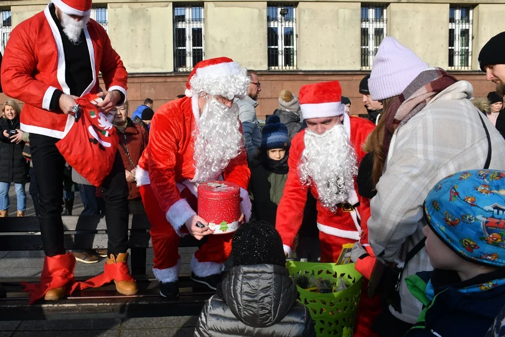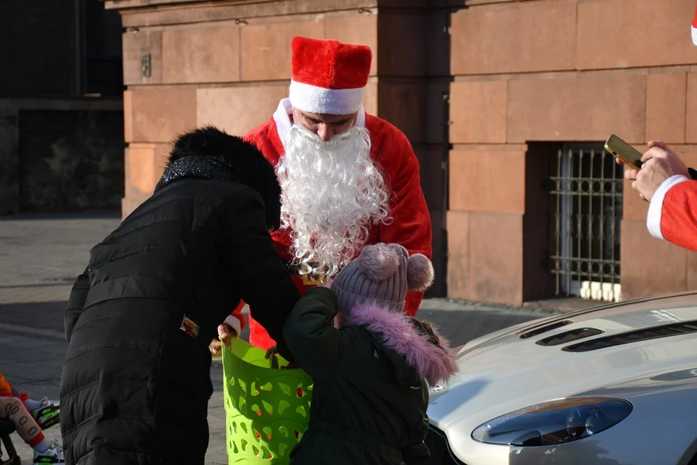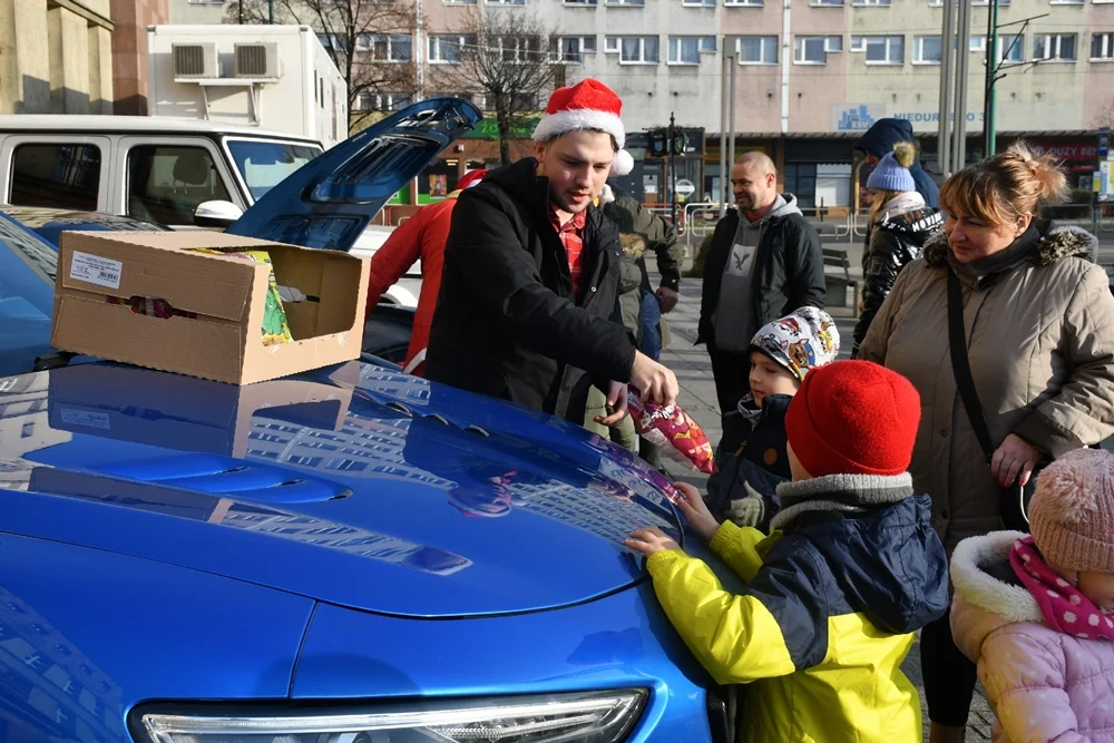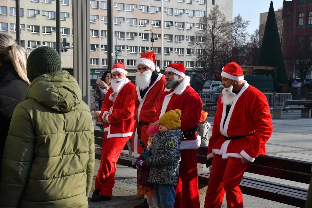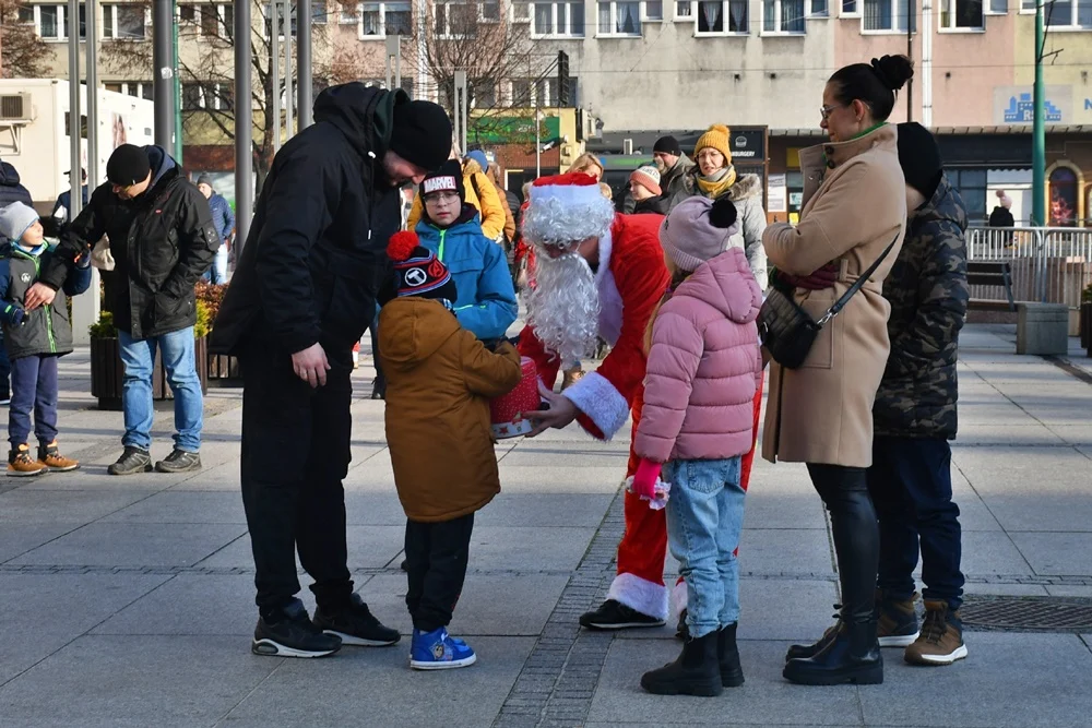 Nowoczesny Mikołaj przyjechał na plac Jana Pawła II w Nowym Bytomiu po godzinie 12:00, gdzie wraz ze swoimi pomocnikami rozdał dzieciom prezenty. Przy okazji akcji została przeprowadzona zbiórka pieniędzy na wybrany Dom Dziecka.