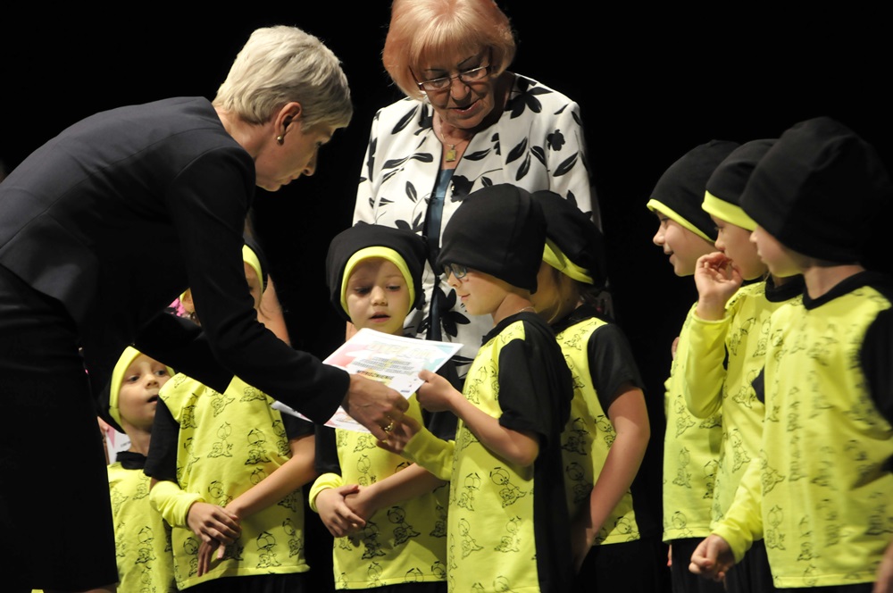 – Jest takie miejsce na ziemi, do którego trafiakażdy z nas – jest to szkoła. Szkoła ma 3 podstawowe zadania: edukować, opiekować się dziećmi i je wychowywać. Każdy z nas, kiedy trafia do szkoły jest obserwowany przez nauczycieli. To właśnie oni za zadanie mają dostrzec talenty młodych ludzi i pomóc im w ich rozwoju. Dzięki wam,widzę, że nauczyciele wywiązują się doskonale ze swoich obowiązków – mówiła wiceprezydent Anna Krzysteczko. – W imieniu własnym i prezydent Grażyny Dziedzic, dziękuję wszystkim nauczycielom, którzy wychwytują te talenty u dzieci, a później dbają o ich rozwój. Wszystkim uczestnikom natomiast gratuluję i życzę abyście dalej rozwijali swe talenty i dzielili się nimiz innymi – dodała.