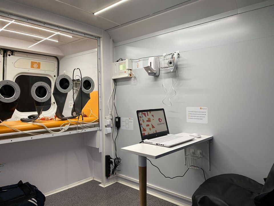 Pojazd został skonstruowany w taki sposób, że Pacjent znajduje się w nim w oddzielnej, szczelnej strefie z niezależnym systemem wentylacji. Dzięki zastosowaniu szyby plexi, zdalnego stetoskopu oraz rękawic inkubatorowych, powietrze pomiędzy strefą Pacjenta a lekarzem jest skutecznie oddzielone. Po każdej wizycie, w strefie Pacjenta uruchamiany jest ozonator, który skutecznie eliminuje wszystkie wirusy i bakterie.