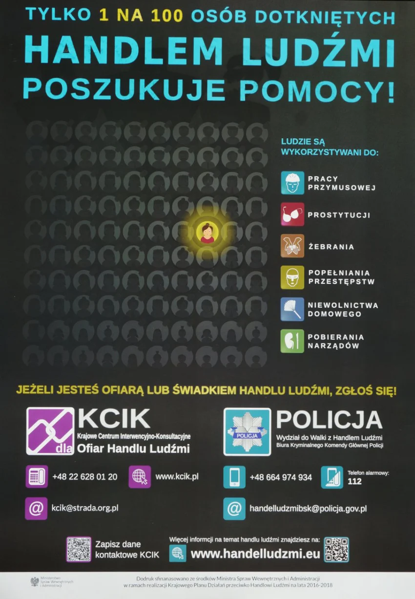 Ministerstwo Spraw Wewnętrznych i Administracji zainicjowało kampanię społeczną ukierunkowaną na problematykęhandlu ludźmi i zagrożeń związanych z podejmowaniem pracy za granicą. Jednym z elementów tej kampanii jest mobilna wystawa poświęcona zjawiskom wchodzącym w zakres tego procederu. Wystawa będąca w dyspozycji Wydziału Spraw Obywatelskich i Cudzoziemców Śląskiego Urzędu Wojewódzkiegoeksponowana jest w obiektach, gdzie istnieje duża szansa dotarcia do odbiorców. Rudzcy uczniowie mogli oglądać ją w Zespole Szkół nr 2 w Bielszowicach, a teraz w Kochłowicach, gdzie na głównym holu stanęło sześć profili z planszami. Umieszczone na nich informacje w języku polskim, angielskim i rosyjskim mają uświadomić odbiorcom powagę problemu, jakim jest handel ludźmi. Ten okrutny rodzaj przestępczości zorganizowanej ma bardzo złożony charakter. Polska ze względu na swoje położenie, sytuację gospodarczą i społeczną jest zarówno krajem tranzytu osób na zachód Europy, jak również miejscem docelowym dla ofiar handlu ludźmi. Poszukujący pracy i lepszego życia są wykorzystywani do przymusowych zajęć, prostytucji, żebrania, czy do popełniania różnego rodzaju przestępstw lub wykroczeń. Wykorzystywani są do wyłudzania świadczeń, a ich prawa, jako pracowników nie są respektowane. Takie sytuacje mogą spotkać również osoby wyjeżdżające za granicę w celach zarobkowych. Istotna jest więc świadomość, a także wiedza na temat zagrożeń, które mogą czyhać w miejscu podjęcia pracy często dorywczej.