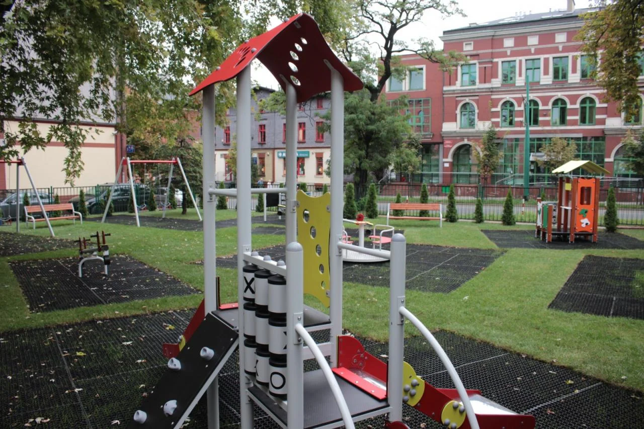 Przy SP 6 z kolei powstały dwa niezależne place zabaw dla różnych grup wiekowych. Na przeznaczonym dla dzieci przedszkolnych znalazły się duży zestaw zabawowy (trzy wieże, dwie zjeżdżalnie, ścianka wspinaczkowa, drabinka, tunel transparentny, osiem paneli funkcyjnych), trampolina naziemna, cztery bujaki sprężynowe, równoważnia oraz domek ze ścianką wspinaczkową, ławeczkami i stolikiem. Drugi, dla dzieci w wieku szkolnym do 12 lat, posiadał duży zestaw zabawowy (wieże, trzy zjeżdżalnie, rura ze stopniami, schody, pomost linowy, przejścia z belkami, przejścia ze sprężynami, tunel transparentny, osiem paneli funkcyjnych, sklep) oraz dwie trampoliny naziemne. Place mają bezpieczną nawierzchnię, a przy nich stanęły kosze na śmieci i stojaki rowerowe. Zadanie kosztowało prawie 292 tys. zł.