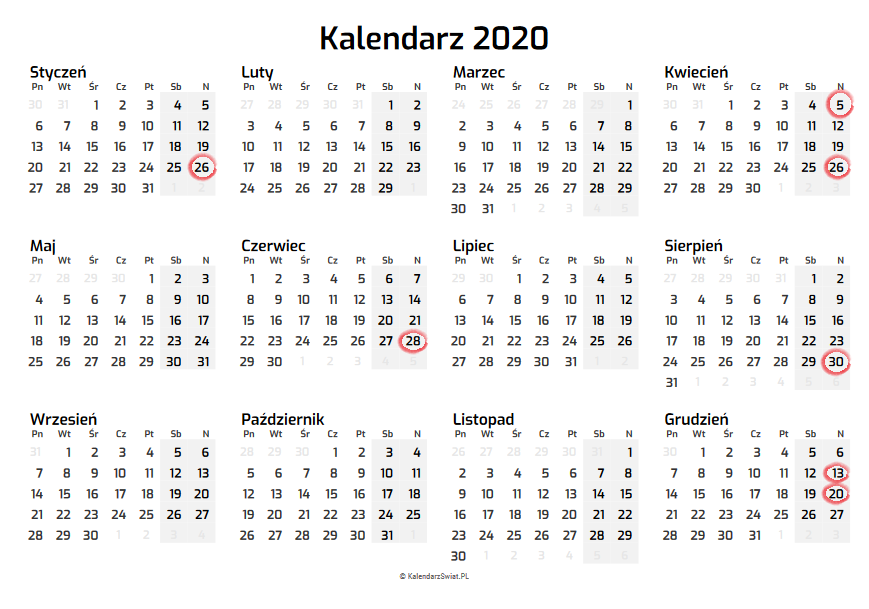 Niedziele handlowe w 2020 roku: