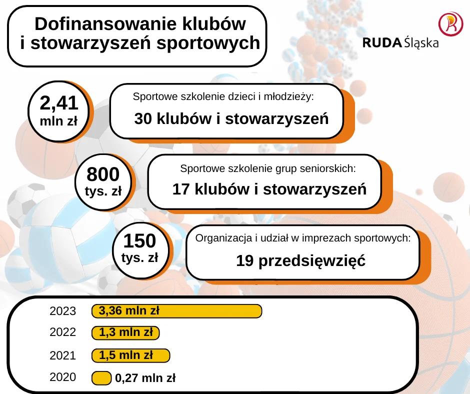 Zabezpieczone w tegorocznym budżecie miasta prawie 3,4 mln zł na dofinansowanie klubów i stowarzyszeń sportowych w mieście są największym takim zastrzykiem finansowym dla rudzkiego sportu w ostatnich latach. W 2022 r. miasto na ten cel przeznaczyło 1,3 mln zł, w 2021 r. – 1,5 mln zł, natomiast w 2020 r. niespełna 300 tys. zł.