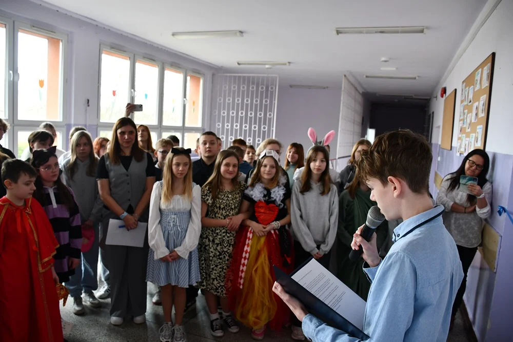 Tuż przed otwarciem sali, uczniowie przygotowali także spektakl teatralny na podstawie „Alicji w Krainie Czarów” – jednak w wersji śląskiej. Była to wyjątkowa okazja, by pokazać młodym ludziom, jak łączyć klasyczne dzieła literatury z lokalną kulturą i językiem. Przedstawienie zostało ciepło przyjęte przez społeczność szkolną i stanowiło doskonały wstęp do patronatu Zbigniewa Stryja.
