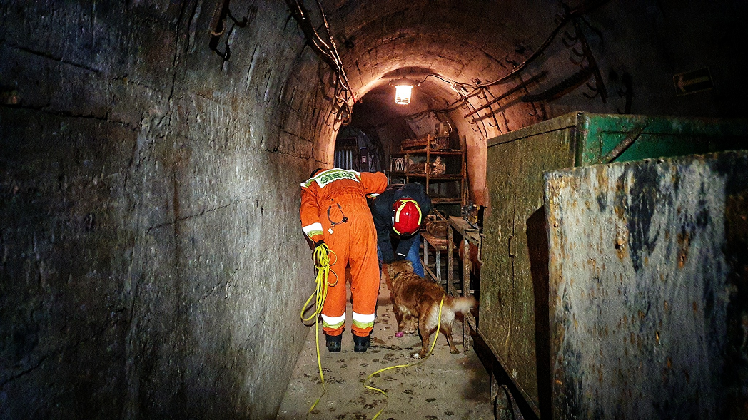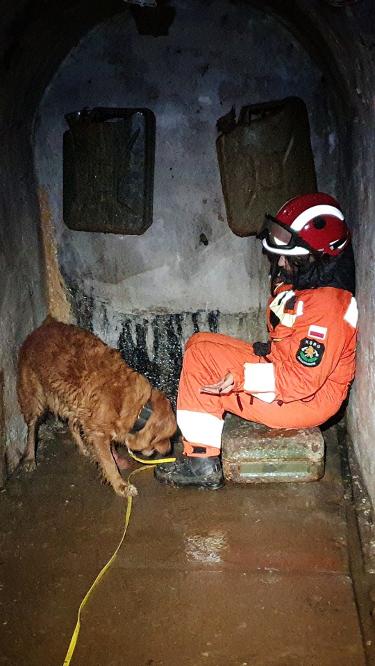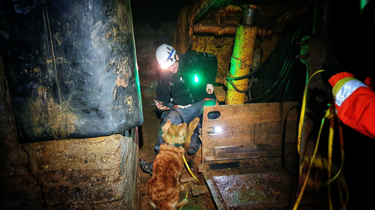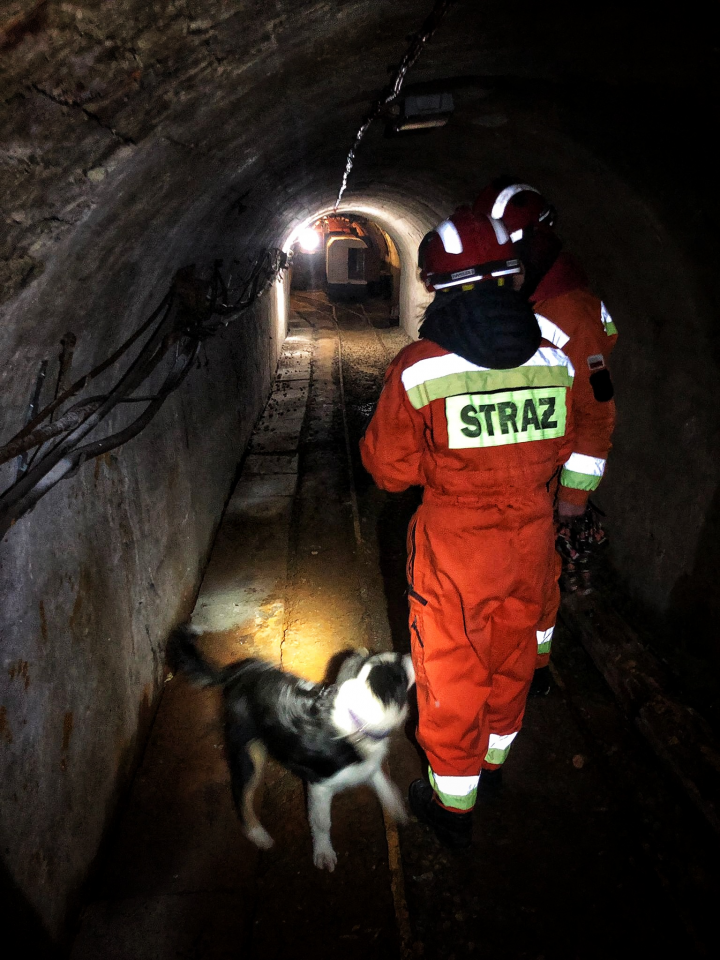 Szkolony retriver o imieniu Kwinta i przewodniczka Sylwia z GRS OSP Ruda Śląska ponownie mogły sprawdzić się w terenie. Tym razem warunki były naprawdę trudne. W kopalni było wilgotno, ciemno i brudno.