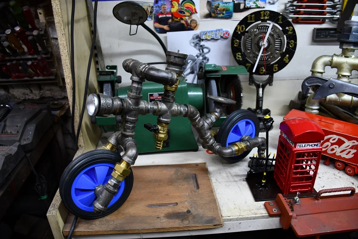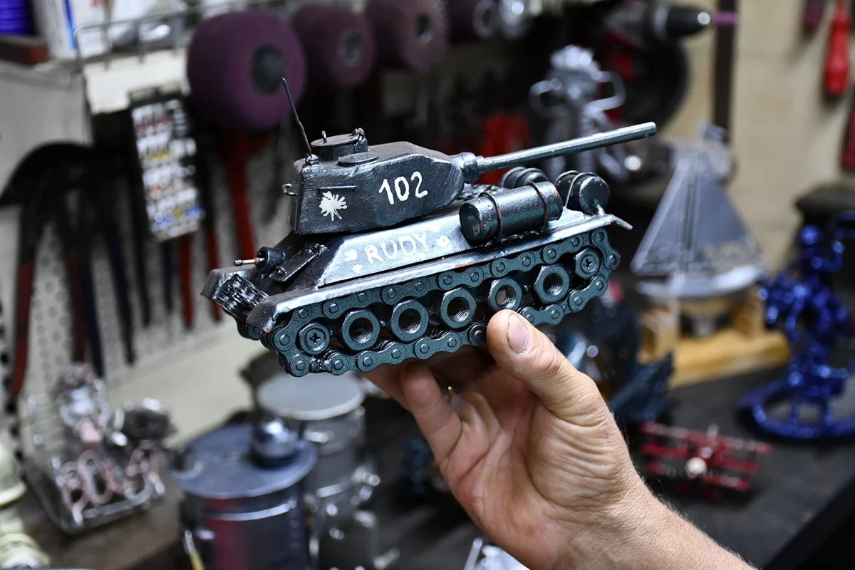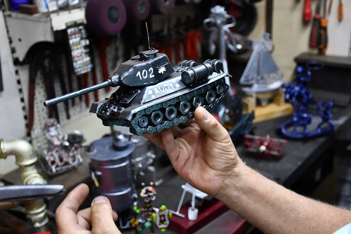 Dariusz Paszek, rudzianin na co dzień pracujący jako spawacz-hydraulik, w wolnych chwilach oddaje się swojej nietypowej pasji – tworzeniu dzieł sztuki z metalu i przemysłowych materiałów. Choć na pierwszy rzut oka jego praca zawodowa niewiele ma wspólnego z artystycznymi aspiracjami, doświadczenie blacharza samochodowego dało mu solidne podstawy do opanowania technik pracy z metalem.
