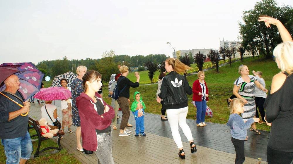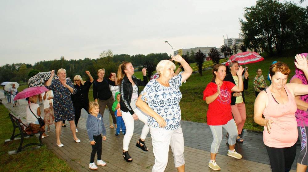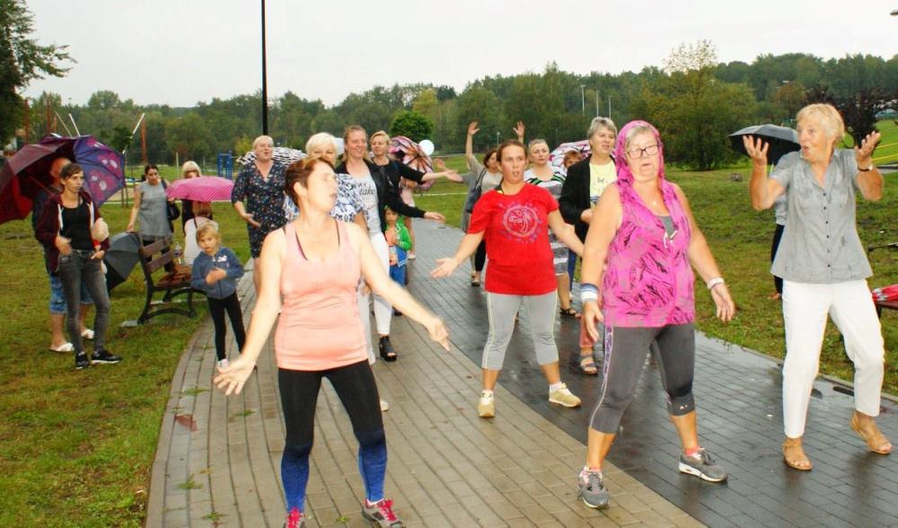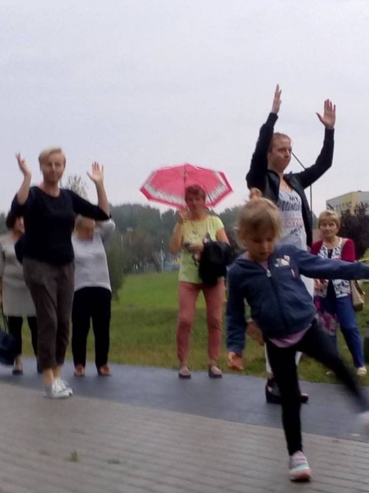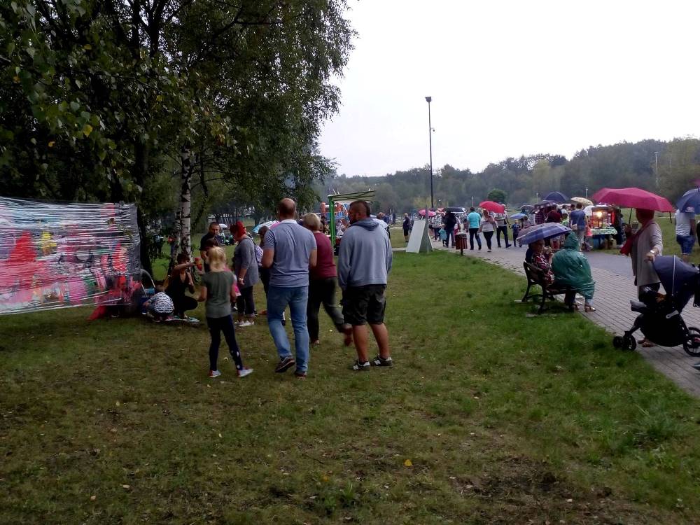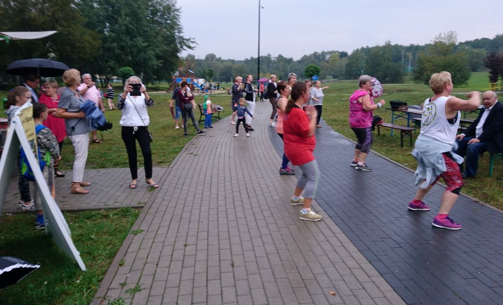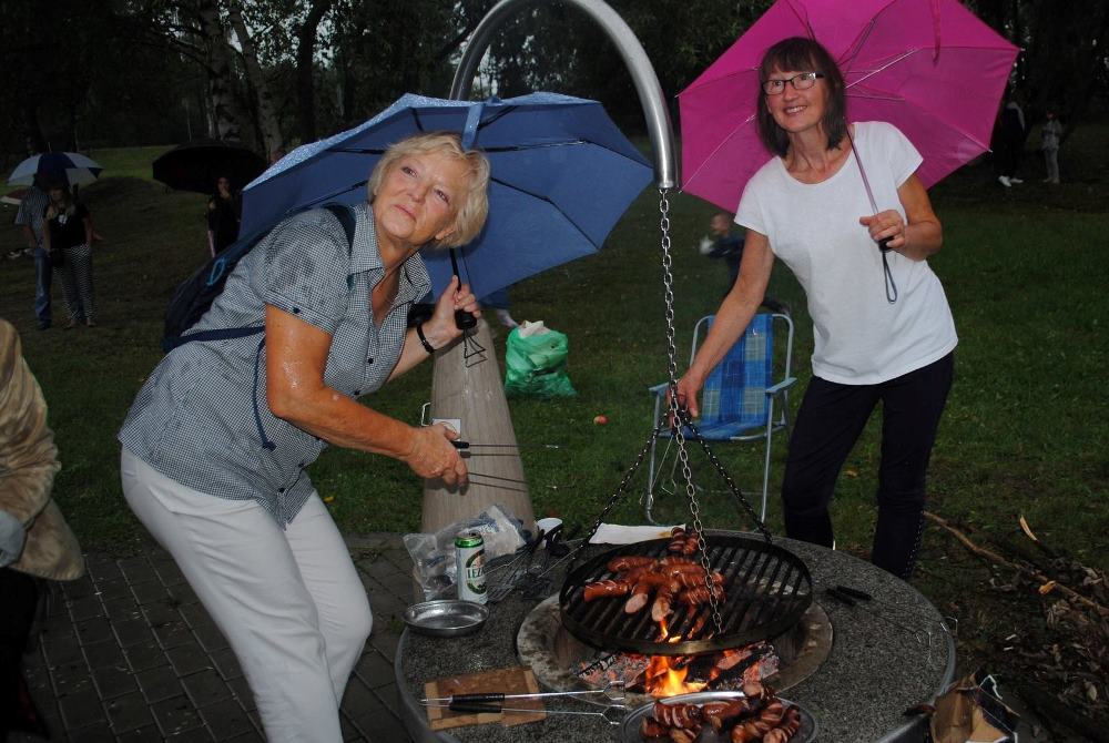 Pomysł organizowania takich pikników rodzinnych, zrodził się trzy lata temu, kiedy to w ramach budżetu obywatelskiego pojawił się tutaj grill. Wtedy pomyślałam, że skoro w Bykowinie nie mamy żadnego miejsca, gdzie mieszkańcy mogliby się spotkać, porozmawiać i zwyczajnie pobyć ze sobą to nasza strefa aktywności może stać się dobrym miejscem do takich spotkań – przy grillu to tak trochę jak przy wspólnym stole… A ponieważ sprzęt w strefie był wtedy nowy i jeszcze nierozpoznany dlatego wydarzenie uzyskało nazwę “warsztatów z grillowania”, bo dopiero uczyliśmy się jak z niego korzystać – mówi Ewa Chmielewska – prezeska Fundacji Aktywni Społecznie AS. W tym roku w ramach pikniku oprócz wspólnego grillowania przewidziano wiele atrakcji – gry i zabawy dla dzieci, konkursy z nagrodami, zumba, objazdowy plac zabaw i wiele niespodzianek. Całość imprezy uświetnił zespół seniorek, które wprowadziły wszystkich w prawdziwie śląskie klimaty. Niestety pogoda nie dopisała i ze względu na deszcz impreza została zakończona przed czasem. Mimo to, na przekór deszczowi, w strugach wody na pożegnanie odtańczono Zumbę. ‘Była to pierwsza taka “Deszczowa Zumba” i na pewno przejdzie do historii. A być może stanie się od tej pory naszą tradycją? – żartuje Ewa Chmielewska.