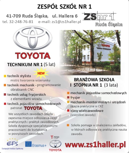 Szkoła współpracuje z wieloma pracodawcami oraz Centrum Kształcenia Praktycznego i Doskonalenia Zawodowego w RudzieŚląskiej. W ramach kształcenia organizowane są liczne wycieczki przedmiotowe do fabryk, montowni, zakładów pracy w kraju i zagranicą. Technikum nr 1 jest szkołą objętą patronatem Toyoty.