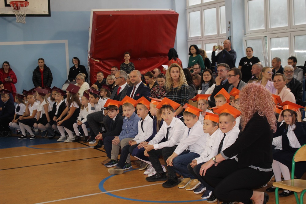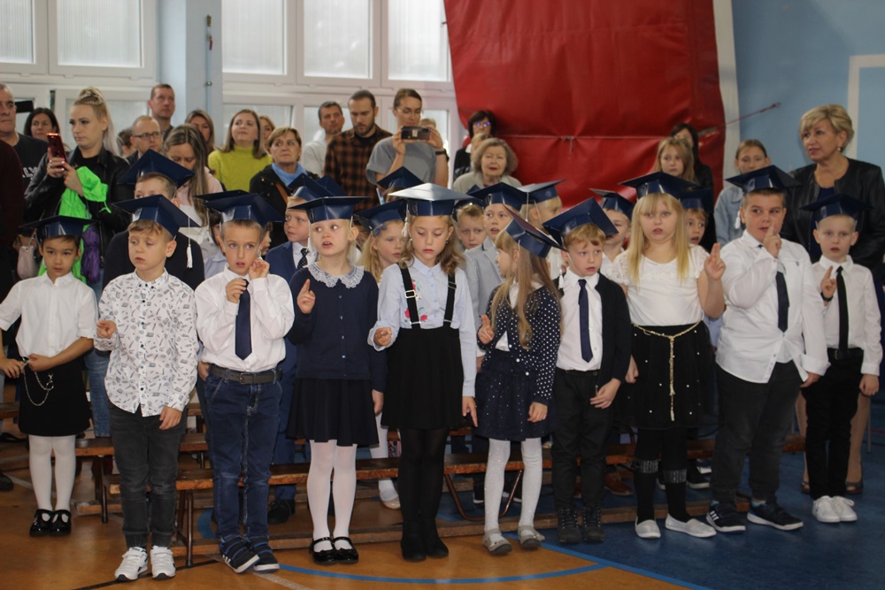Pasowanie na ucznia szkoły to bardzo ważny moment, do którego dzieci przygotowują się przez pierwszy miesiąc nauki. Pełna sala zgromadzonych rodziców i dziadków ze wzruszeniem obserwowała swoje pociechy, które dopiero niedawno przestraszone rozpoczynały swoją drogę edukacji, a teraz, po niespełna miesiącu nauki, są odważnymi dumnymi uczniami.