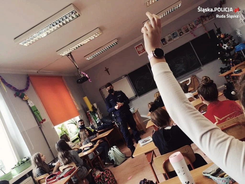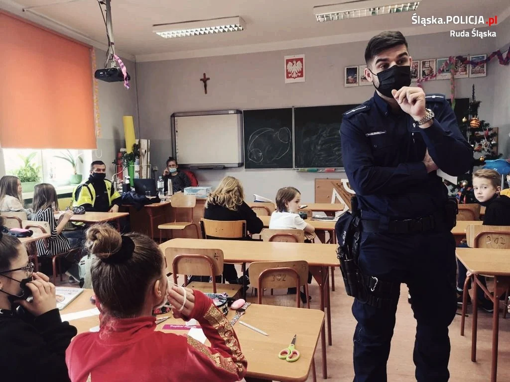 Wizyta w szkole to okazja dla mundurowych do przypomnienia młodym mieszkańcom Rudy Śląskiej, o zasadach bezpieczeństwa podczas drogi do i ze szkoły, ale i aktywnego wypoczynku podczas rozpoczynających się ferii. W ubiegły piątek profilaktyk, mundurowy z drogówki i dzielnicowy z komisariatu V gościli w Szkole Podstawowej nr 24 przy ulicy Lexa. Podczas spotkania przypomnieli oni o zasadach prawidłowego i bezpiecznego zachowania się czasie drogi do i ze szkoły, w domu i podczas wypoczynku i wyjazdów na zimowe ferie.