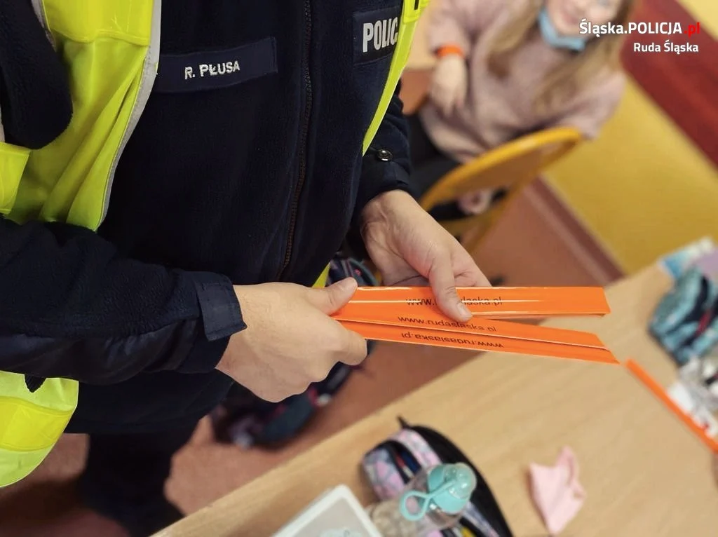 Policjanci z Rudy Śląskiej odwiedzili uczniów Szkoły Podstawowej Nr 24 przy ulicy Lexa. Uczniom tuż przed feriami przypomniano nie tylko zasady bezpieczeństwa w szkole i w domu, ale również w trakciezimowego wypoczynku. Profilaktyk, dzielnicowy i policjant z drogówki promowali wśród uczniów modę na noszenie odblasków, które poprawiają bezpieczeństwo pieszych na drogach.