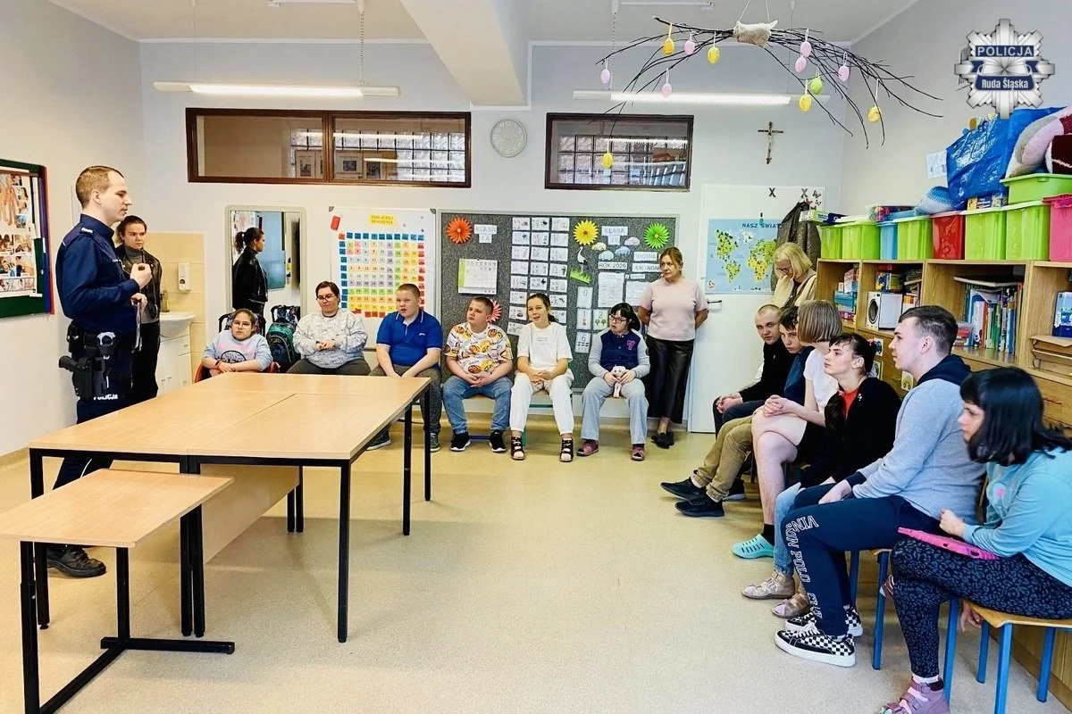 Uczniowie Szkoły Podstawowej nr 12 Specjalnej w Rudzie Śląskiej wzięli udział w spotkaniu poświęconym bezpieczeństwu w codziennych sytuacjach. Zajęcia poprowadził policyjny profilaktyk sierż. szt. Krzysztof Struzik.