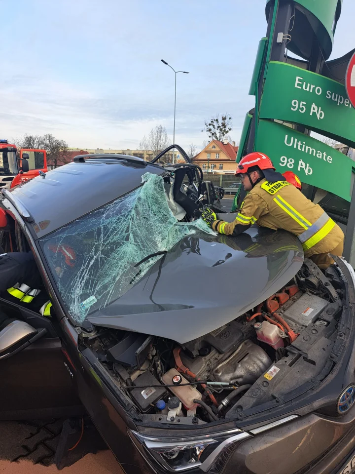 Na miejscu musieli interweniować strażacy, którzy uwolnili 43-latka z samochodu. Mężczyzna został zabrany do szpitala w Goduli. Ma złamaną nogę oraz doznał urazu biodra. W samochodzie podróżował sam.