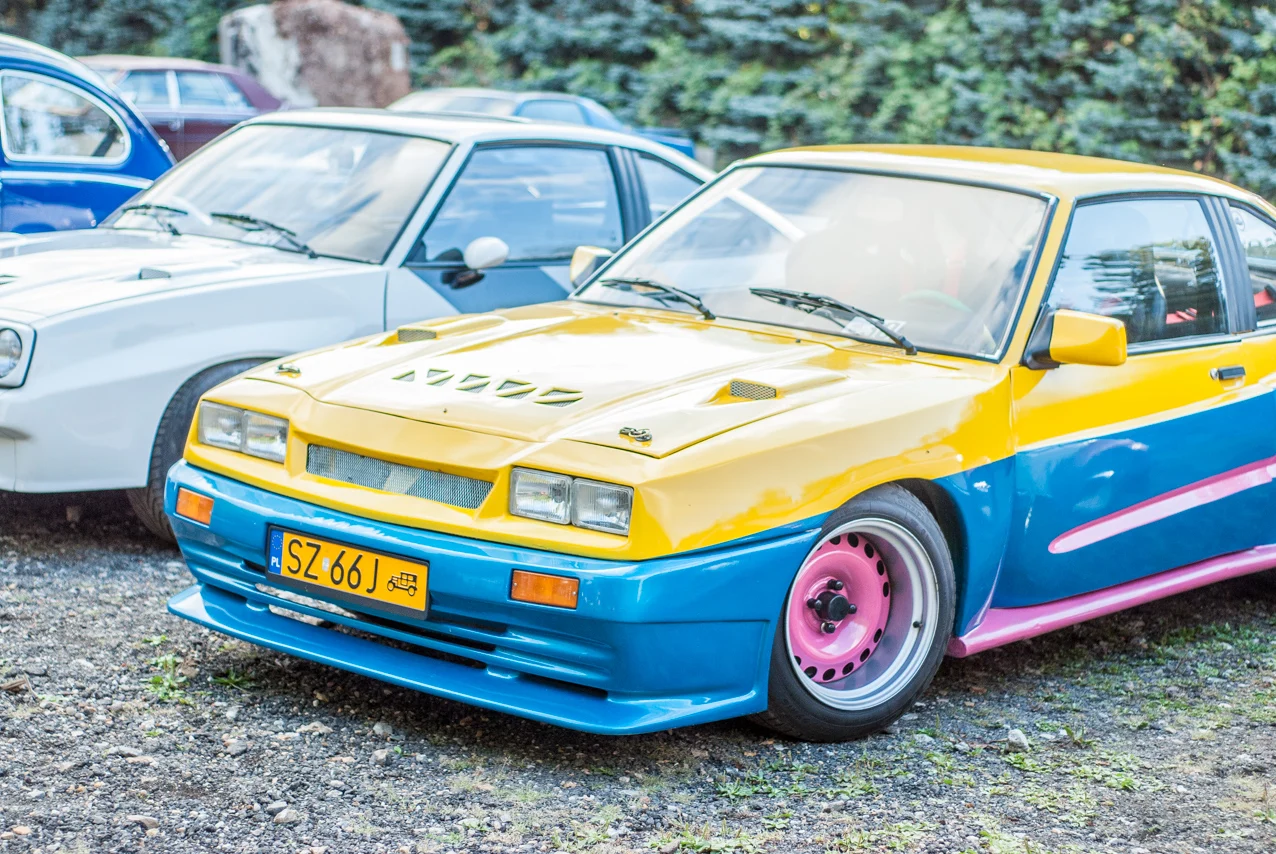 Wokół niego garbusy, fiaty wszelakie, w tym rzadko spotykany Maluch “Bombel”. Były Polonezy, były stare Saaby, Skody, Łady i garść pojazdów zza wielkiej wody. Co ciekawe i warte podkreślenia, większość wizualnie prezentowała się rewelacyjnie, ktoś włożył w nie ogrom pracy.