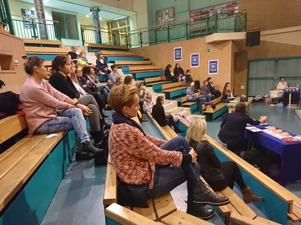 Spotkanie było podzielone na dwie części – teoretyczną i praktyczną. W teoretycznej części uczestnicy spotkania mieli szansę wysłuchać wykładów prowadzonych przez członków Międzynarodowego Stowarzyszenia Studentów Medycyny, którzy zaznajomili uczestniczki z czynnikami ryzyka zachorowania, objawami i samym leczeniem. Widownia zaznajomiła się również z prezentacjami pokazującymi, jak samodzielnie zbadać swoje piersi. Ponadto pojawiły się informacje cenne zwłaszcza dla osób, które choroba dotknęła – rodzaje protez dostępnych na rynku, strojów kąpielowych i innych akcesoriów, które mogą okazać się przydatne. Ważnym punktem było wystąpienie Pani Izabeli, która przeszła trudną drogę i pokonała raka. W części teoretycznej znalazł się także czas na pytania uczestniczek i dyskusje.
