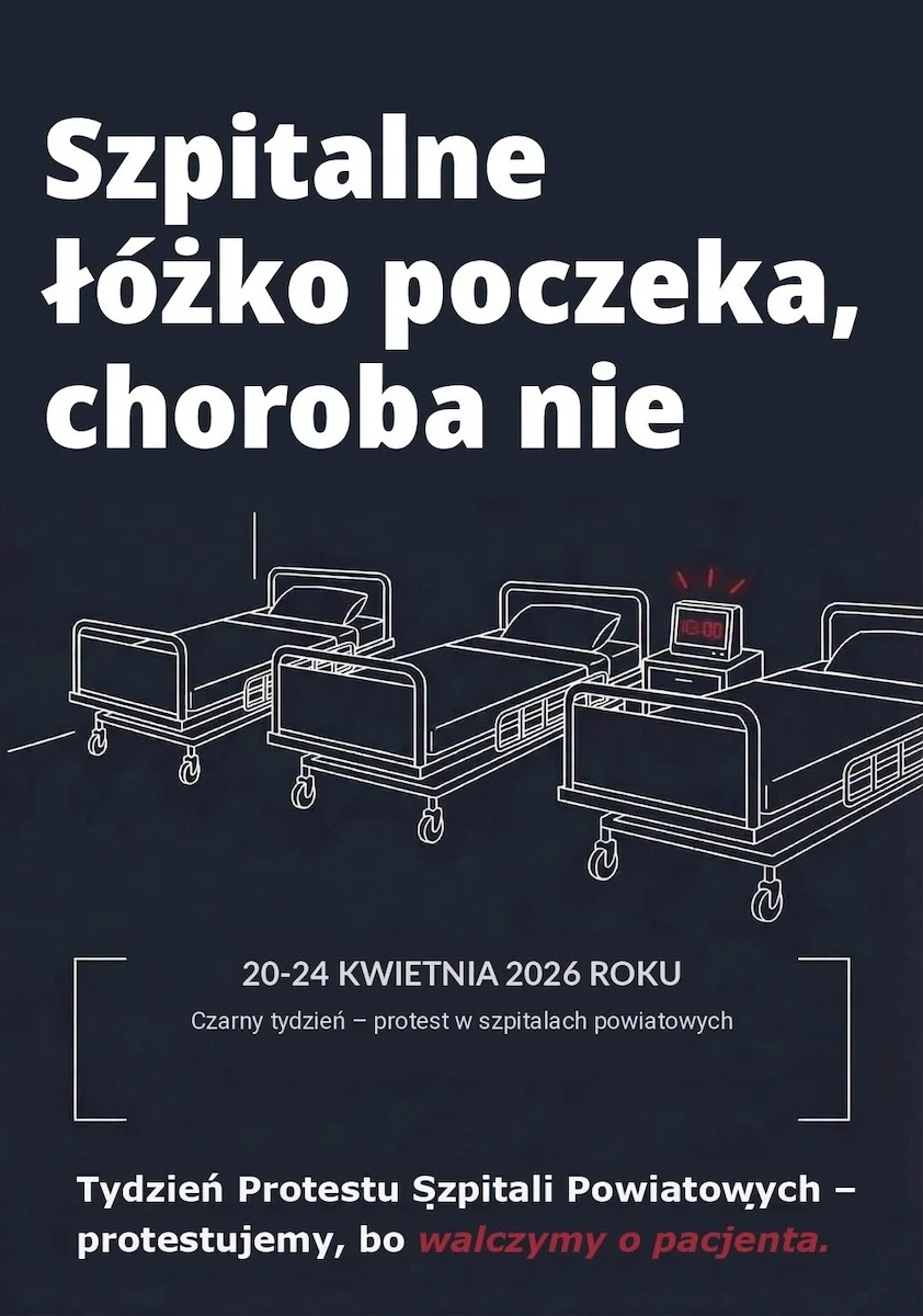 Szpitale powiatowe w całej Polsce rozpoczęły w poniedziałek, 20 kwietnia 2026 roku, protest przeciwko ograniczaniu finansowania i pogarszającej się sytuacji systemowej. Akcja ma charakter informacyjny i według organizatorów nie powinna zakłócić udzielania świadczeń. Do protestu przyłączył się także Szpital Miejski w Rudzie Śląskiej, który zapowiedział udział w ogólnopolskiej akcji i symboliczną minutę ciszy 22 kwietnia o godz. 11.45.
