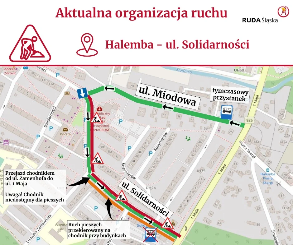 – Powodem takiej decyzji jest usunięcie starego kanału położonego w osi jezdni, a prace, które obejmują znaczną część jej szerokości, nie pozwalały na wprowadzenie innego rozwiązania. Alternatywą mogło być tylko zamknięcie całej ulicy – napisał wiceprezydent Rudy Śląskiej – Jacek Morek.