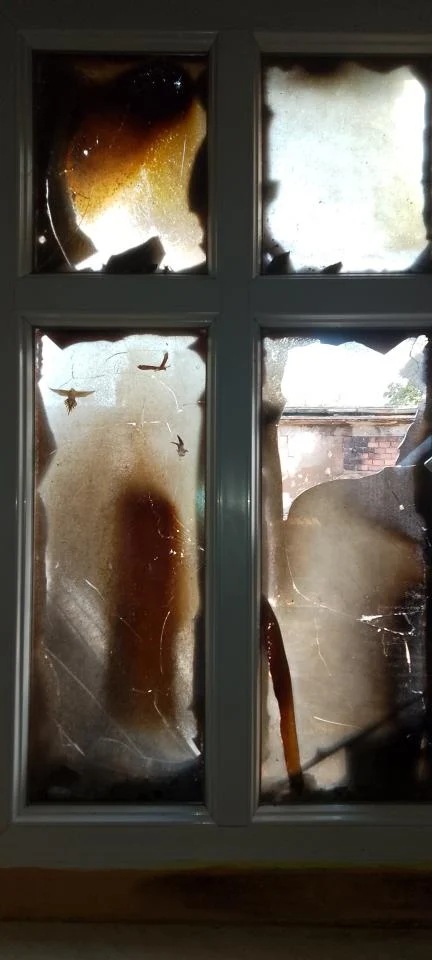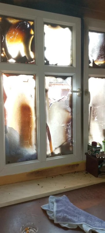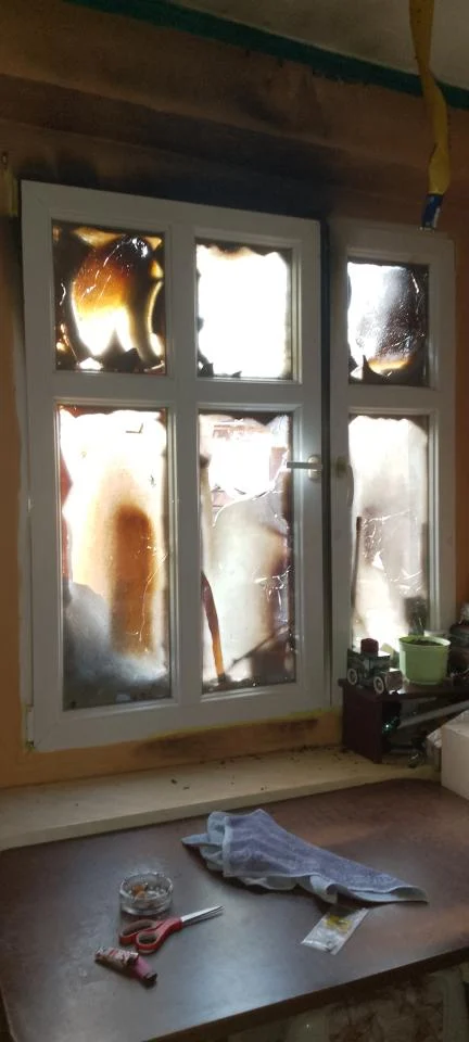 Wysokie płomienie spowodowały nadpalenie okien oraz elementów wykończeniowych dachu budynku mieszkalnego.