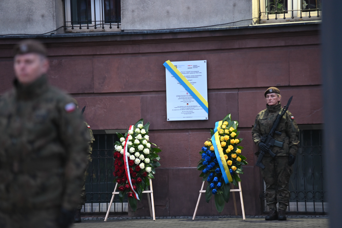 Na zakończenie uroczystości odsłonięto tablicę pamiątkową na fasadzie budynku Urzędu Miasta, poświęconą 80. rocznicy Tragedii Górnośląskiej.