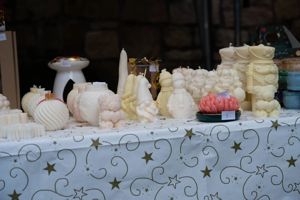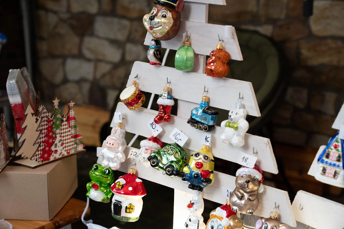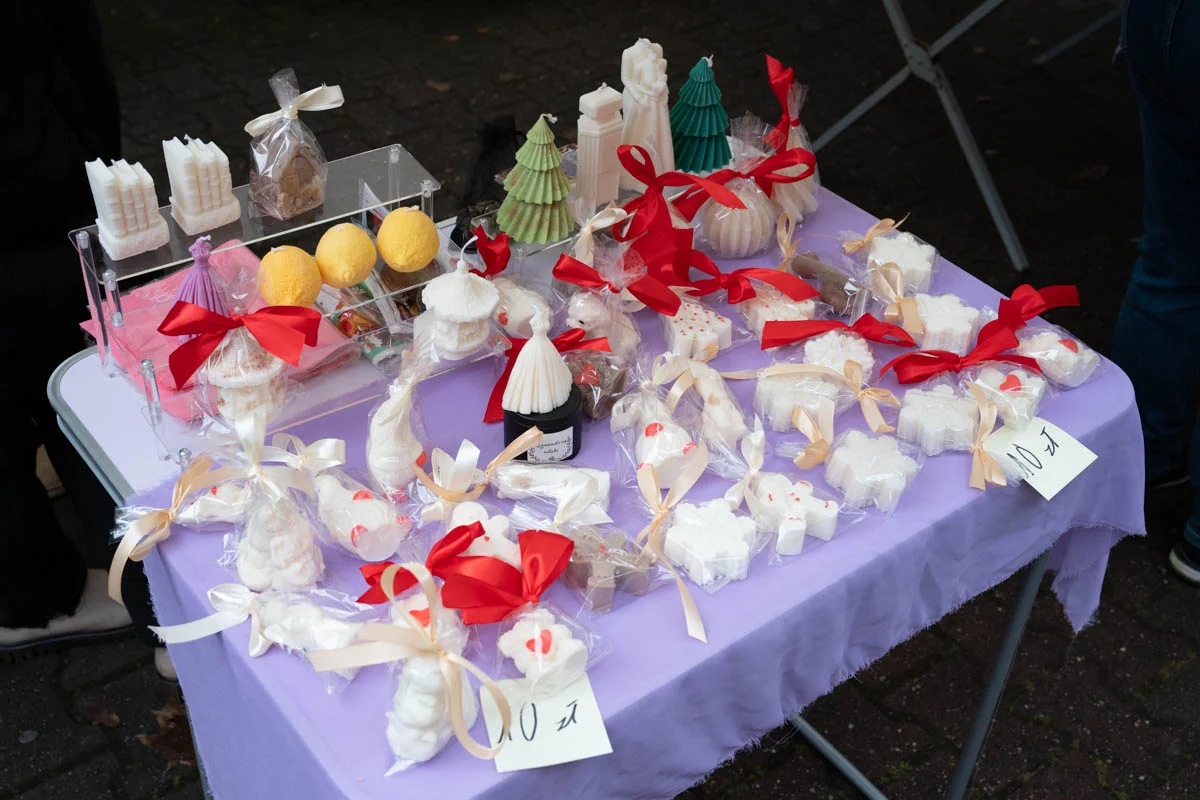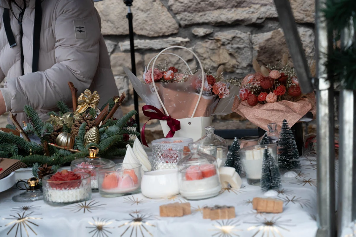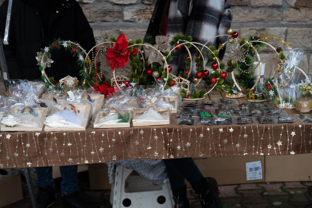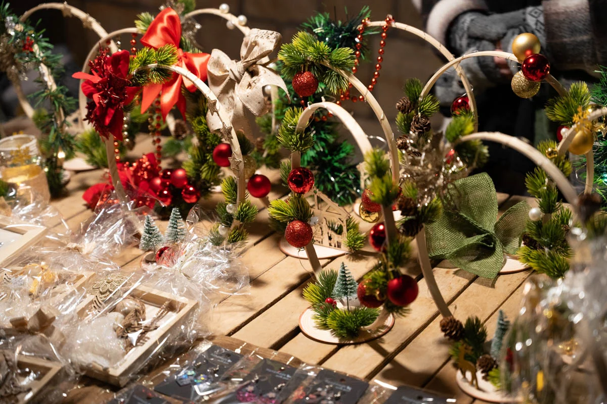 Na jarmarku nie zabrakło różnorodnych stoisk świątecznych. Mieszkańcy mogli kupić ręcznie robione ozdoby choinkowe, dekoracje do domu, czapki, szaliki i inne zimowe dodatki. Dużym zainteresowaniem cieszyła się biżuteria z żywicy, oryginalne zabawki dla dzieci oraz stoiska z domowymi wypiekami – ciastami, piernikami i ciasteczkami.