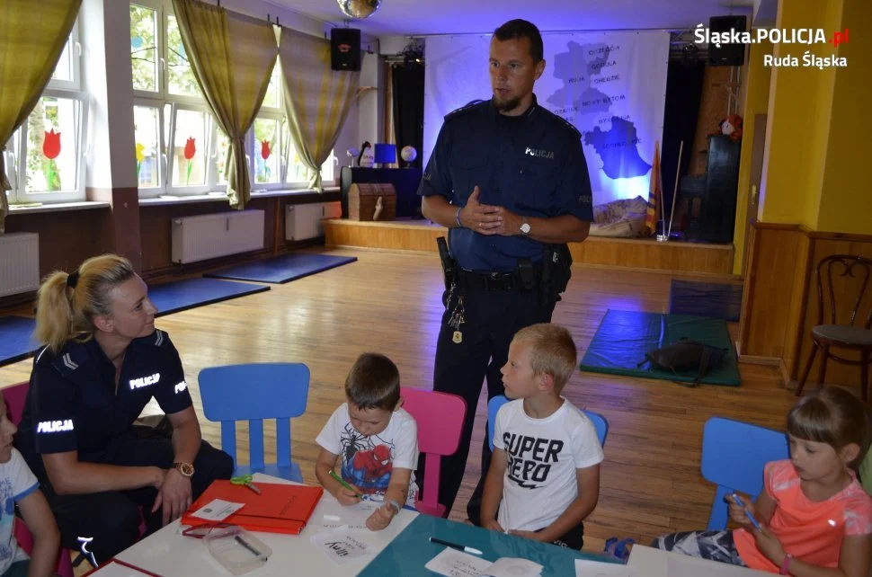 W trakcie zajęć policjanci rozmawiali z młodymi rudzianami także o bezpieczeństwie w ruchu drogowym, odpowiednim zachowaniu się podczas przechodzenia przez jezdnię, jak również podczas letnich wycieczek rowerowych. Dzielnicowi informowali o zagrożeniach mogących występować w kontakcie z obcymi osobami, oraz o sposobach powiadamiania służb ratunkowych. Duży nacisk postawiono także na kwestię wypoczynku nad wodą. Mundurowi przypomnieli dzieciom gdzie i w jaki sposób bezpiecznie odpoczywać nad wodą.